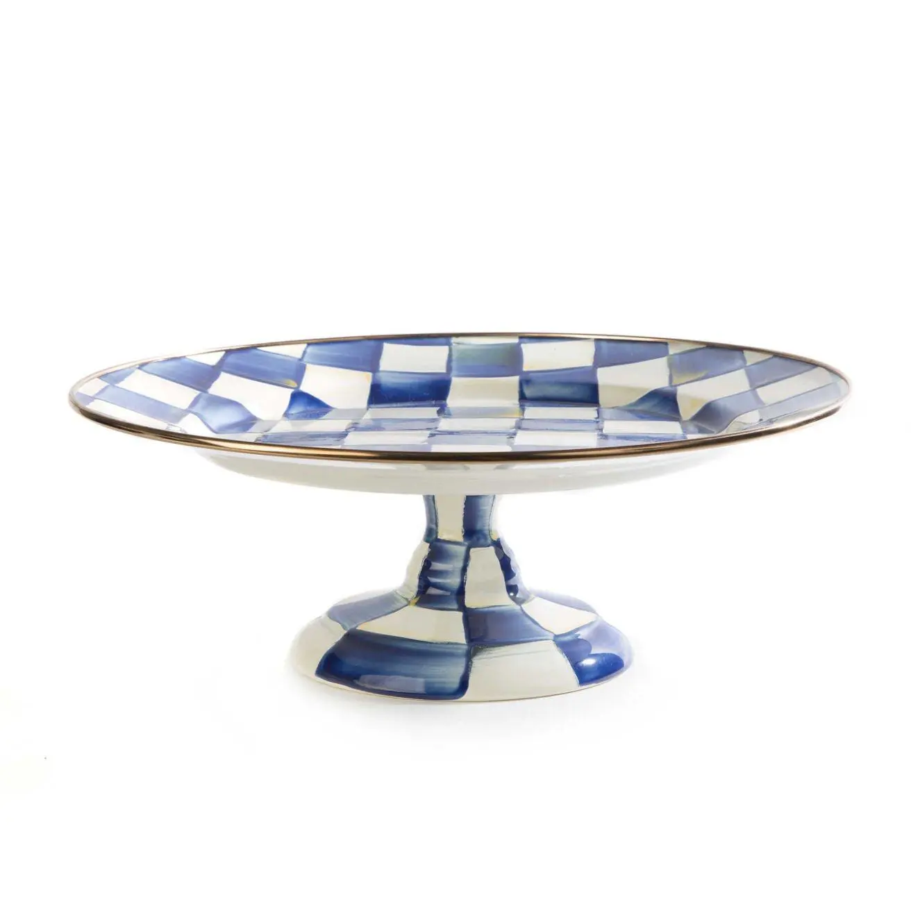 Luxury Royal Check Enamel Dining Pedestal Platter - Small