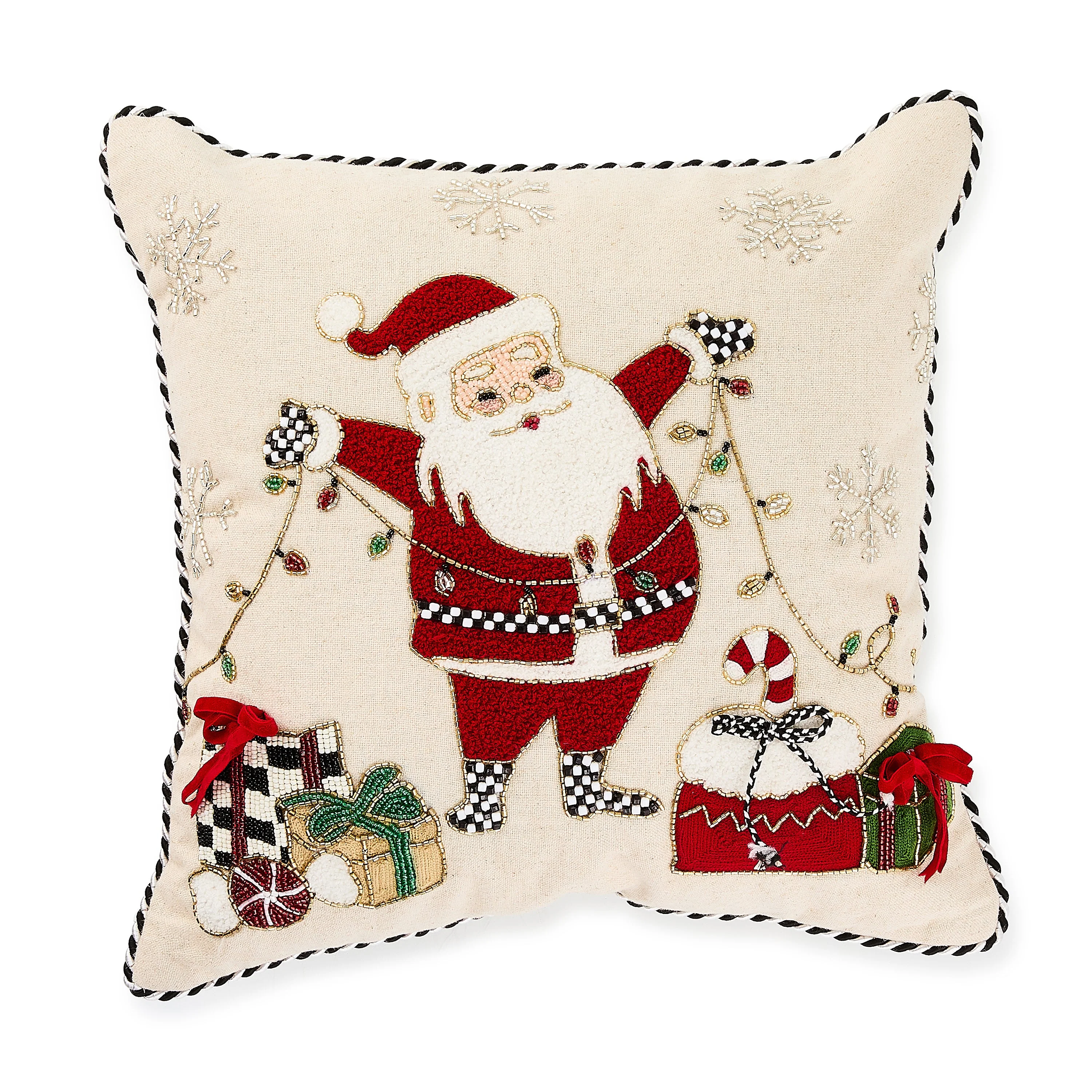 Santa with Tree Lights Throw Pillow