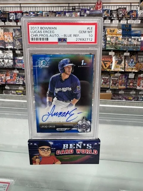 2017 BOWMAN CHROME PROSPECT AUTOGRAPHS BLUE REFRACTORS #CPALE LUCAS ERCEG /150 PSA 10