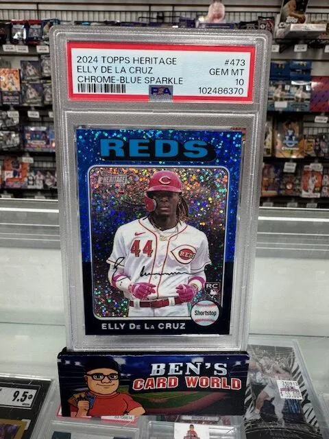 2024 TOPPS HERITAGE CHROME BLUE SPARKLE REFRACTORS #473 ELLY DE LA CRUZ PSA 10