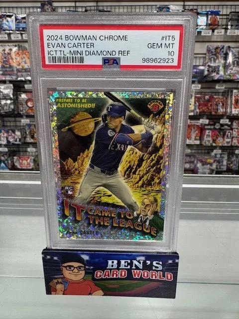 2024 BOWMAN CHROME IT CAME TO THE LEAGUE MINI-DIAMOND REFRACTORS #IT5 EVAN CARTER /150 PSA 10