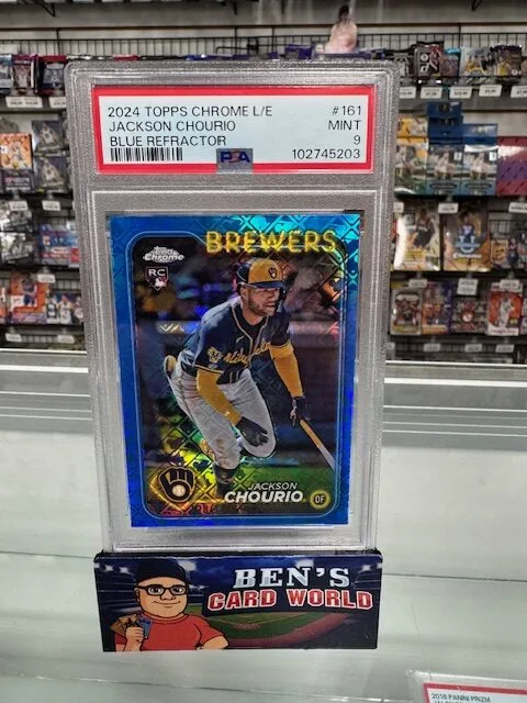 2024 TOPPS CHROME LOGOFRACTOR BLUE REFRACTORS #161 JACKSON CHOURIO /150 PSA 9