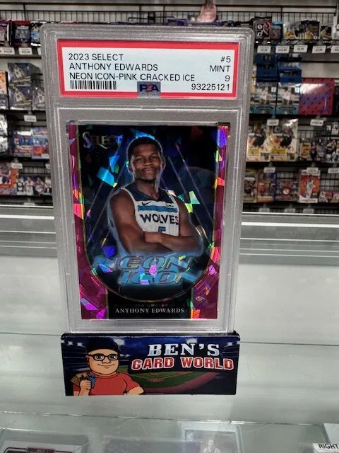 2023-24 SELECT NEON ICON PINK CRACKED ICE PRIZMS #5 ANTHONY EDWARDS /99 PSA 9