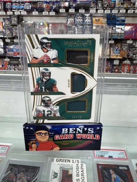 2024 IMMACULATE COLLECTION IMMACULATE TRIPLE JERSEYS #4 JALEN HURTS/RANDALL CUNNINGHAM/DONOVAN MCNAB