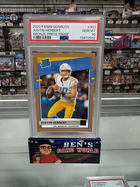 2020 DONRUSS PRESS PROOF BRONZE #303 JUSTIN HERBERT RR PSA 10