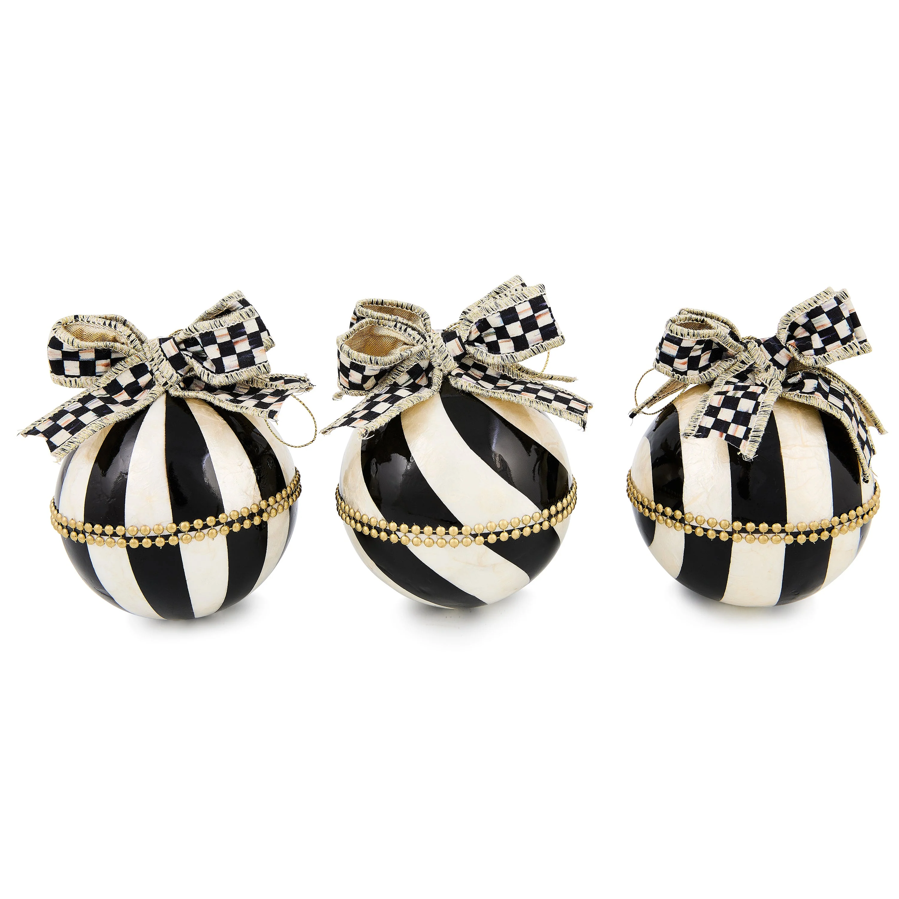 Courtly Noel Stripe Capiz Ball Ornaments, Set of 3