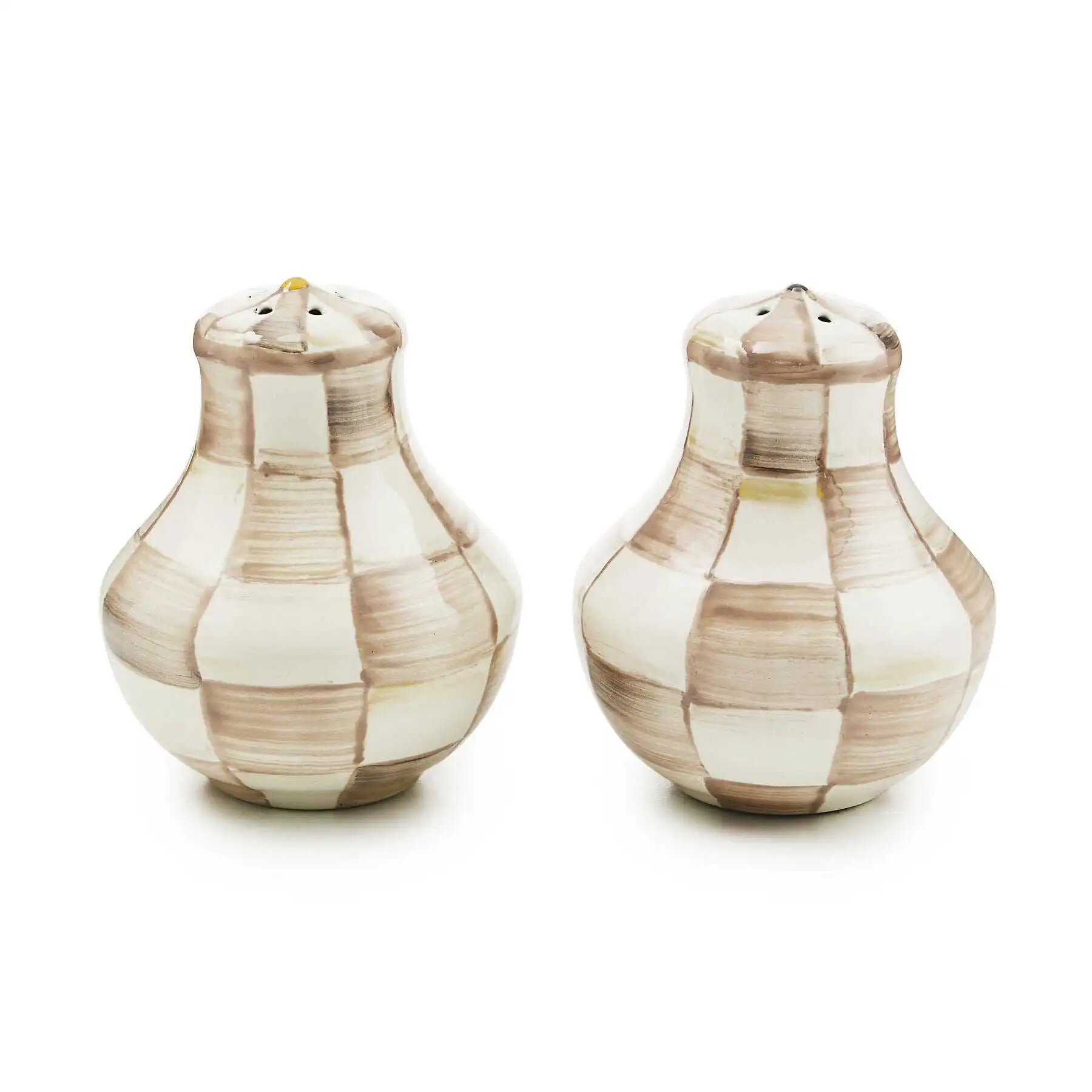 MacKenzie-Childs Mocha Check Salt & Pepper Shakers