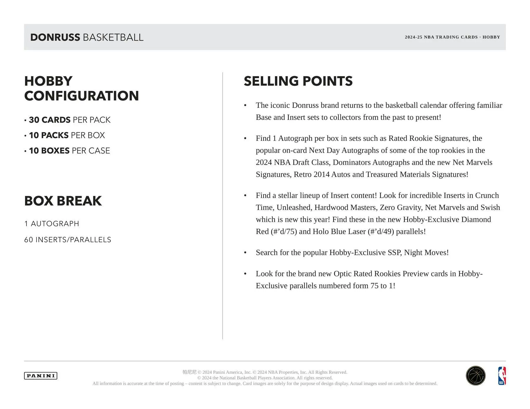 The iconic Donruss brand returns to the basketball calendar offering familiar Base and Insert sets to collectors from the past to present!
