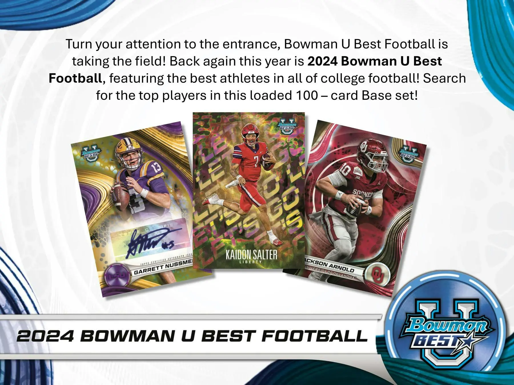 Turn your attention to the entrance, Bowman U Best Football is taking the field! Back again this year is 2024 Bowman U Best Football, featuring the best athletes in all of college football!