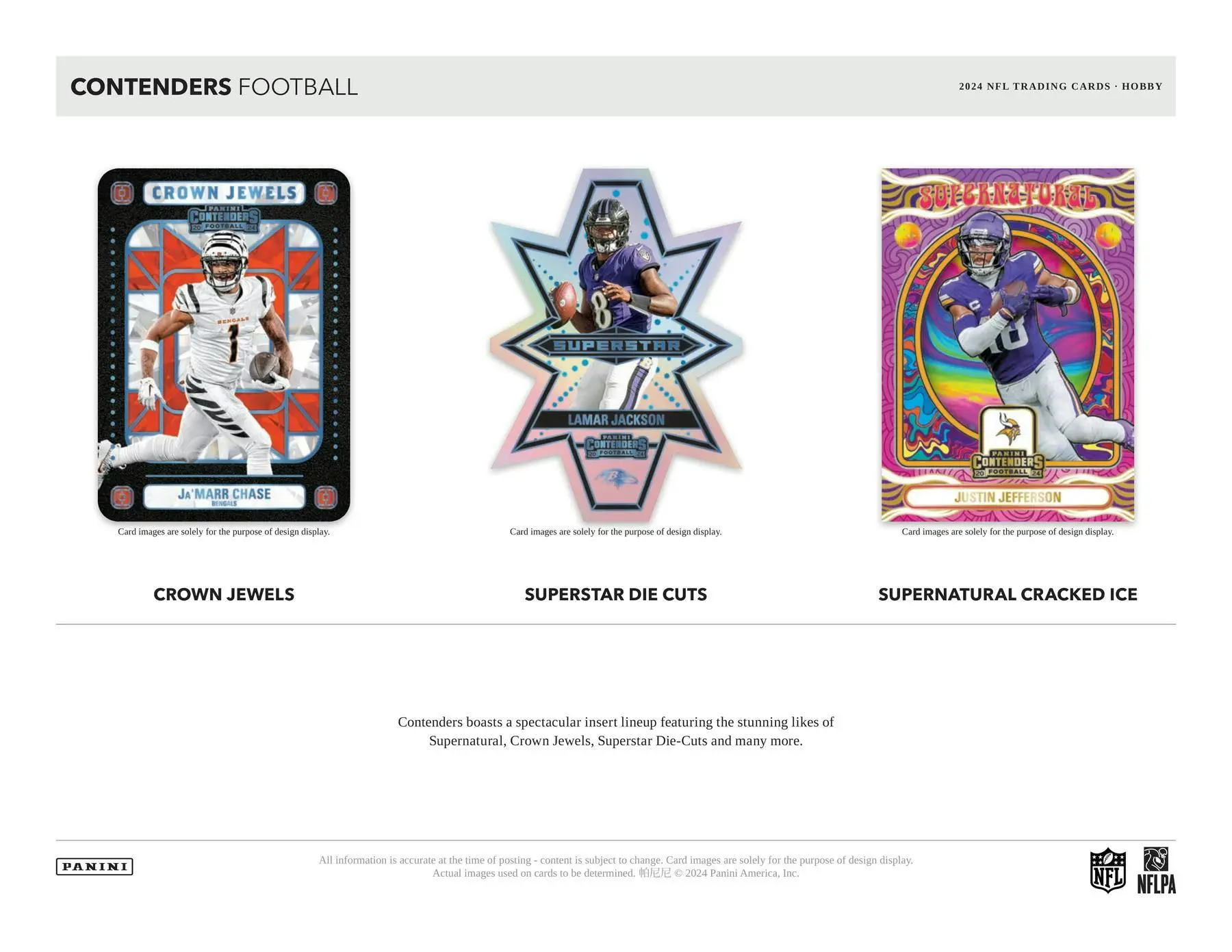 Contenders boasts an incredible insert lineup, featuring the likes of the Supernatural, Crown Jewels, Superstar Die-Cuts, and many more.