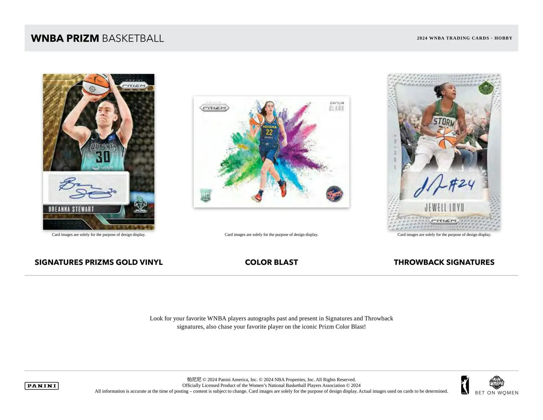 Look for your favorite WNBA players autographs past and present in Signatures and Throwback signatures, also chase your favorite player on the iconic Prizm Color Blast!
