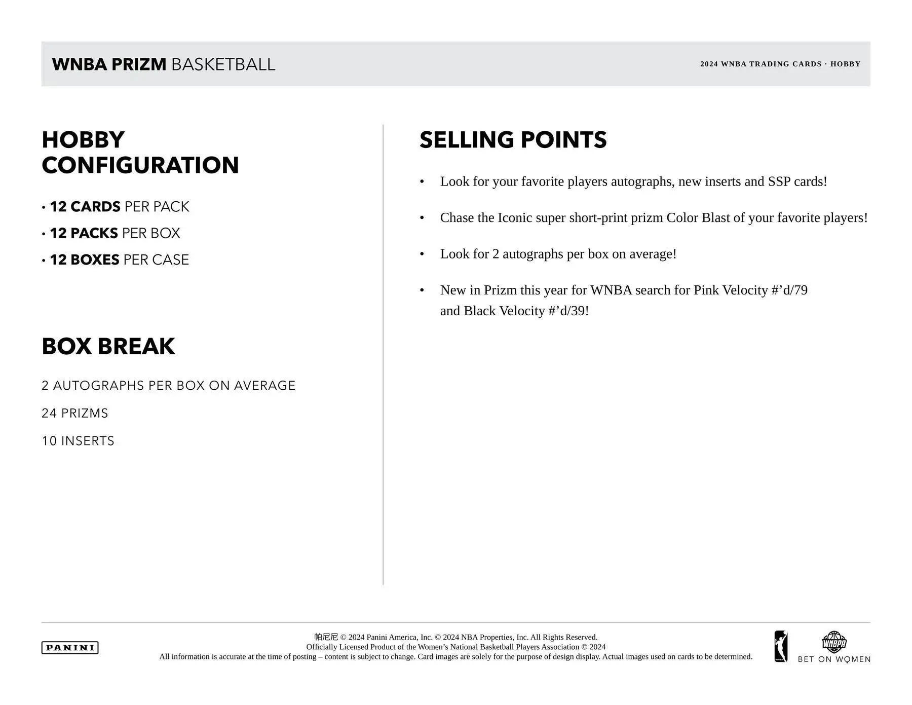 New in Prizm this year for WNBA search for Pink Velocity #'d/79 and Black Velocity #'d/39!