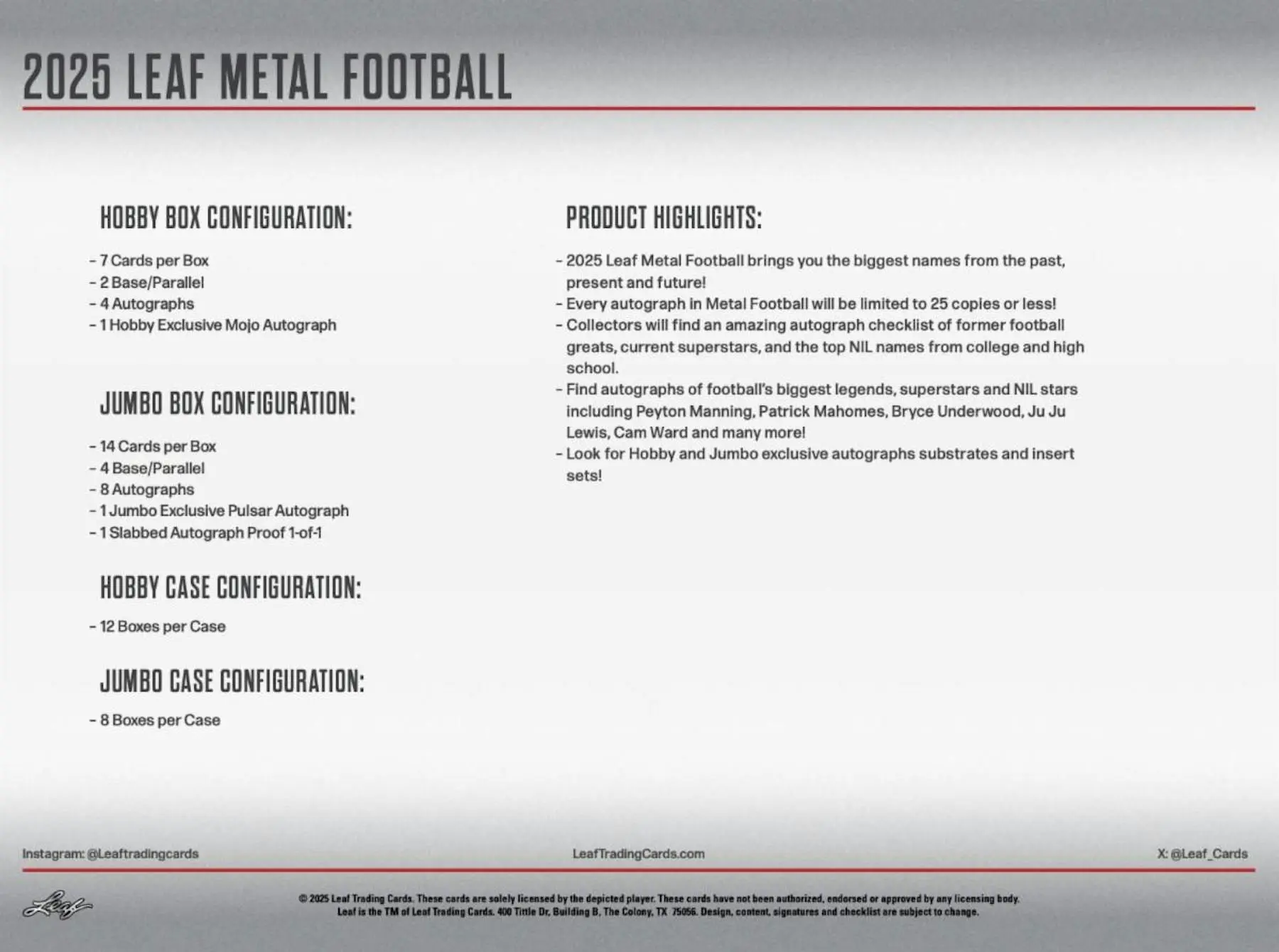 2025 Leaf Metal Football brings you the biggest names from the past, present and future!
