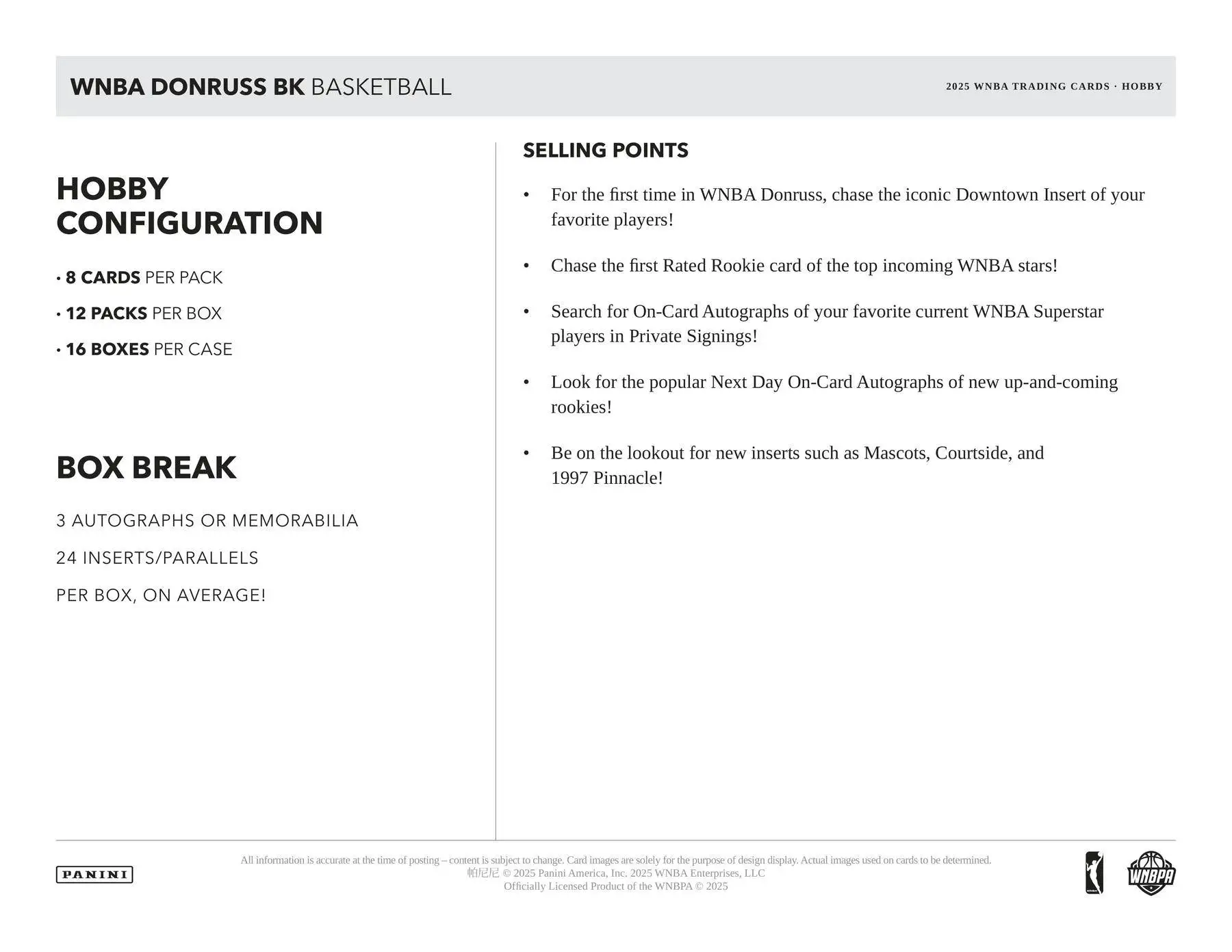 For the first time in WNBA Donruss, chase the iconic Downtown insert of your favorite rookies and current superstars! Look for on card autographs of the best current WNBA players in Private Signings!