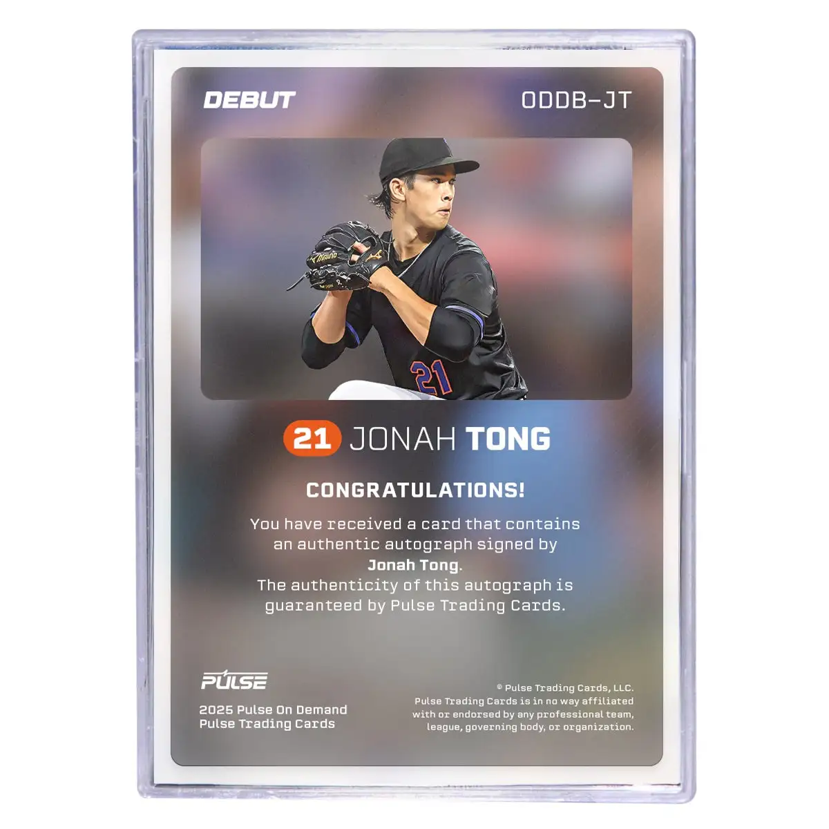 Introducing the Jonah Tong debut trading card — available exclusively through 2025 Pulse On Demand. Celebrate his major league debut with this limited-edition release.