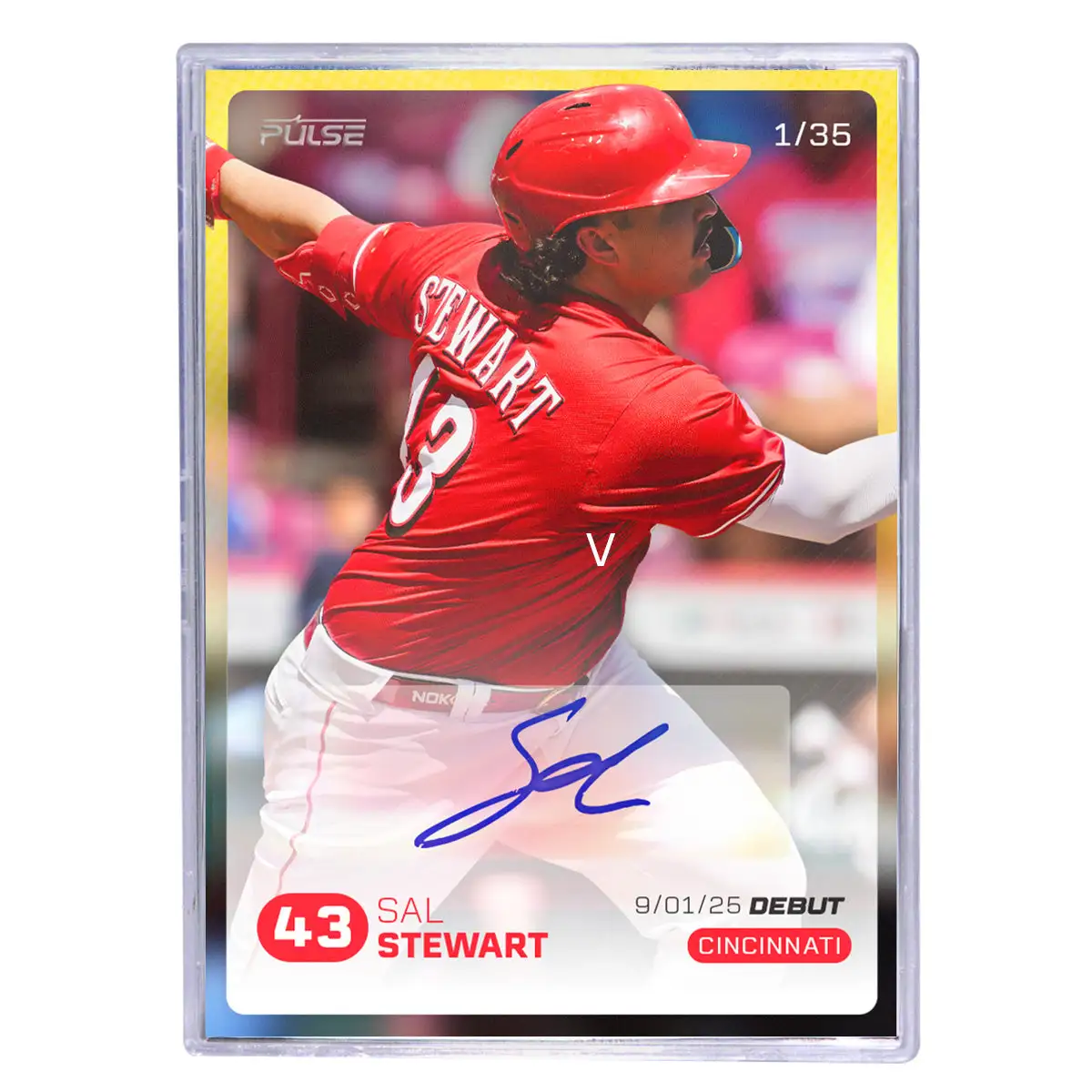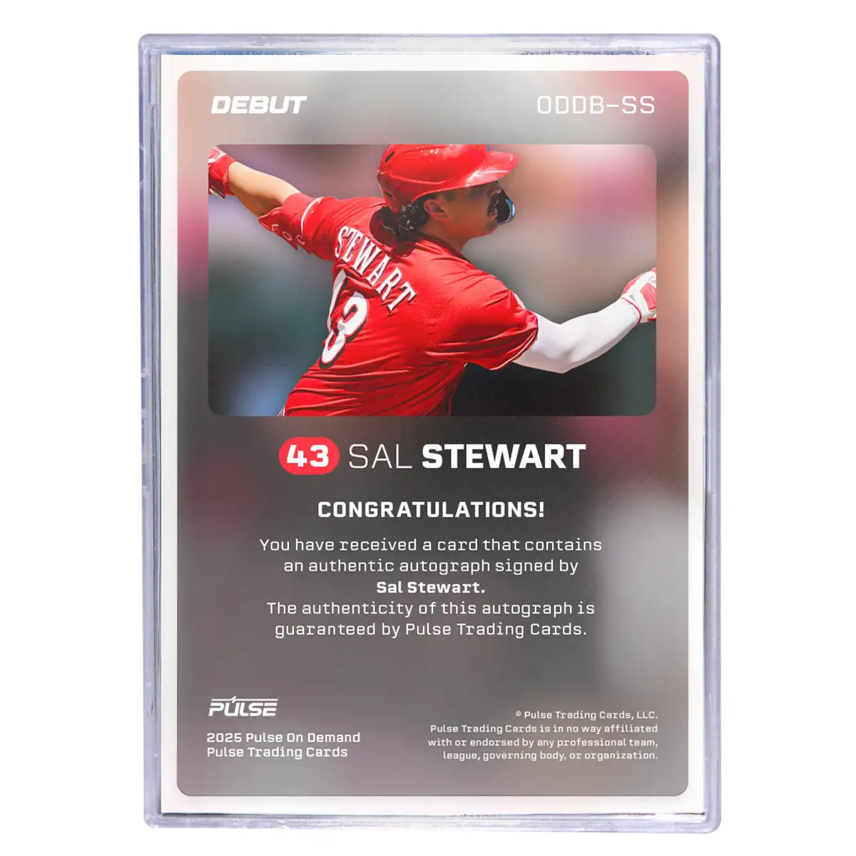 Introducing the Sal Stewart debut trading card — available exclusively through 2025 Pulse On Demand. Celebrate his major league debut with this limited-edition release.
