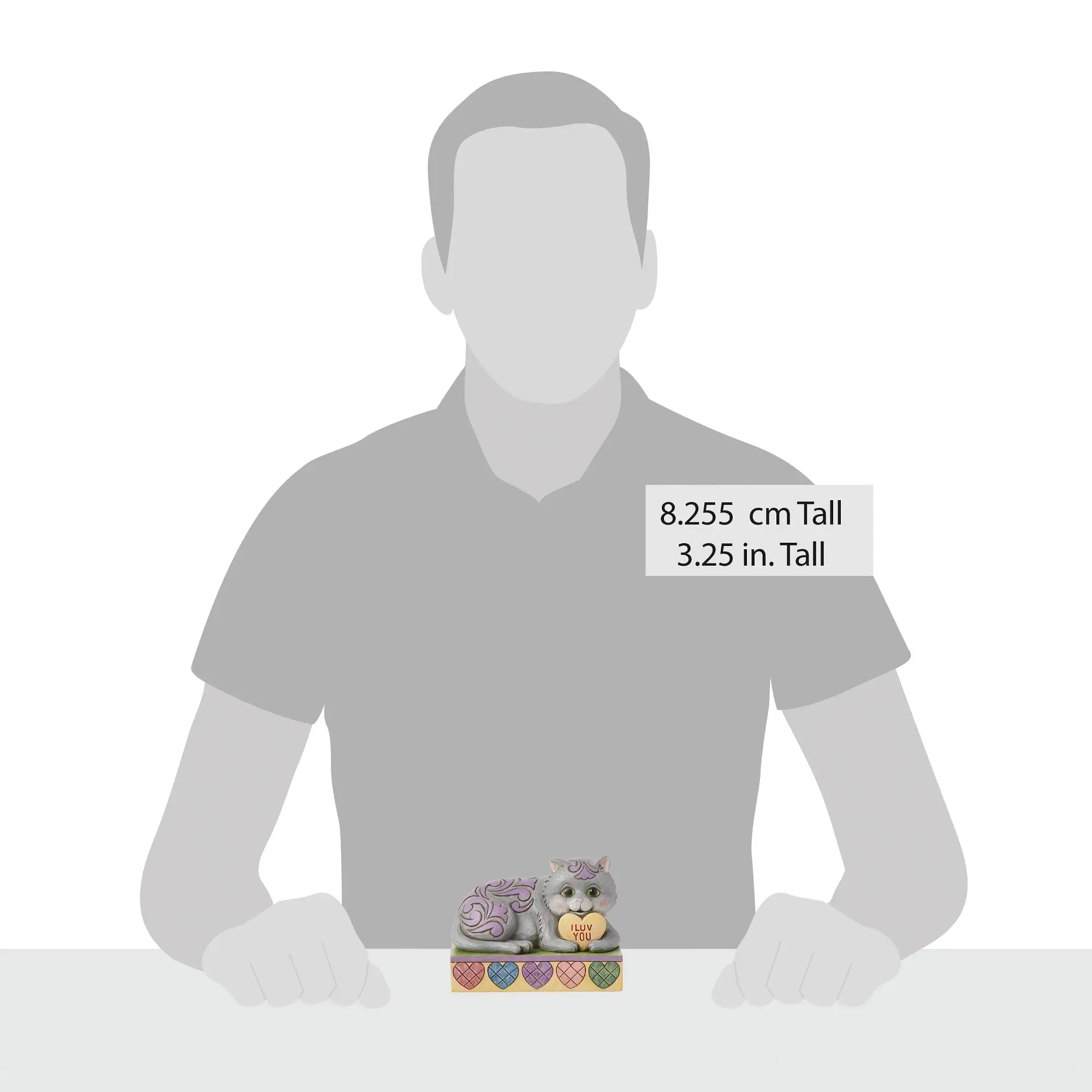 Inspired by Sweethearts candy, this adorable Jim Shore crafted kitty holds a candy heart on a stage of colorful patchwork. With the artist's iconic rosemaling on the cat's fur, this adorable feline invites love and snuggles this Valentine's Day.