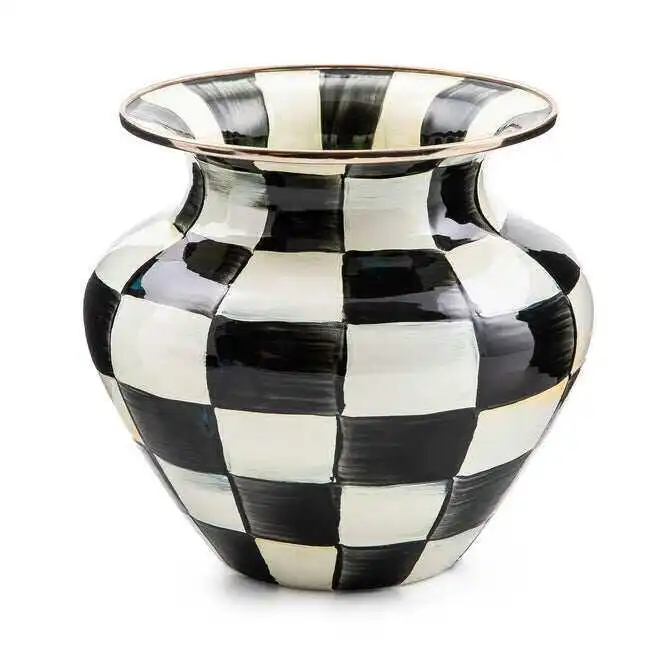 Sterling Check: Our Sterling Check® Large Vase is a just-right-height centerpiece to enhance conversation without getting in the way. With hand-painted grey checks, trimmed with a bronzed rim, it makes the ultimate gift for the host when filled with fresh flowers.