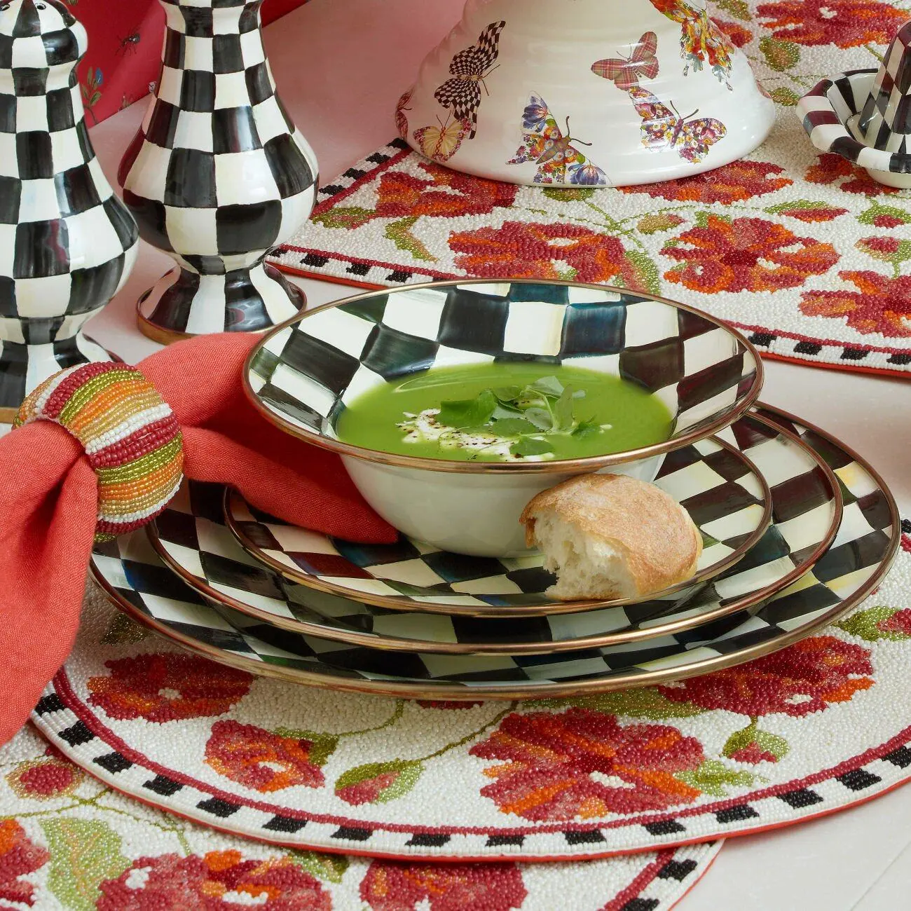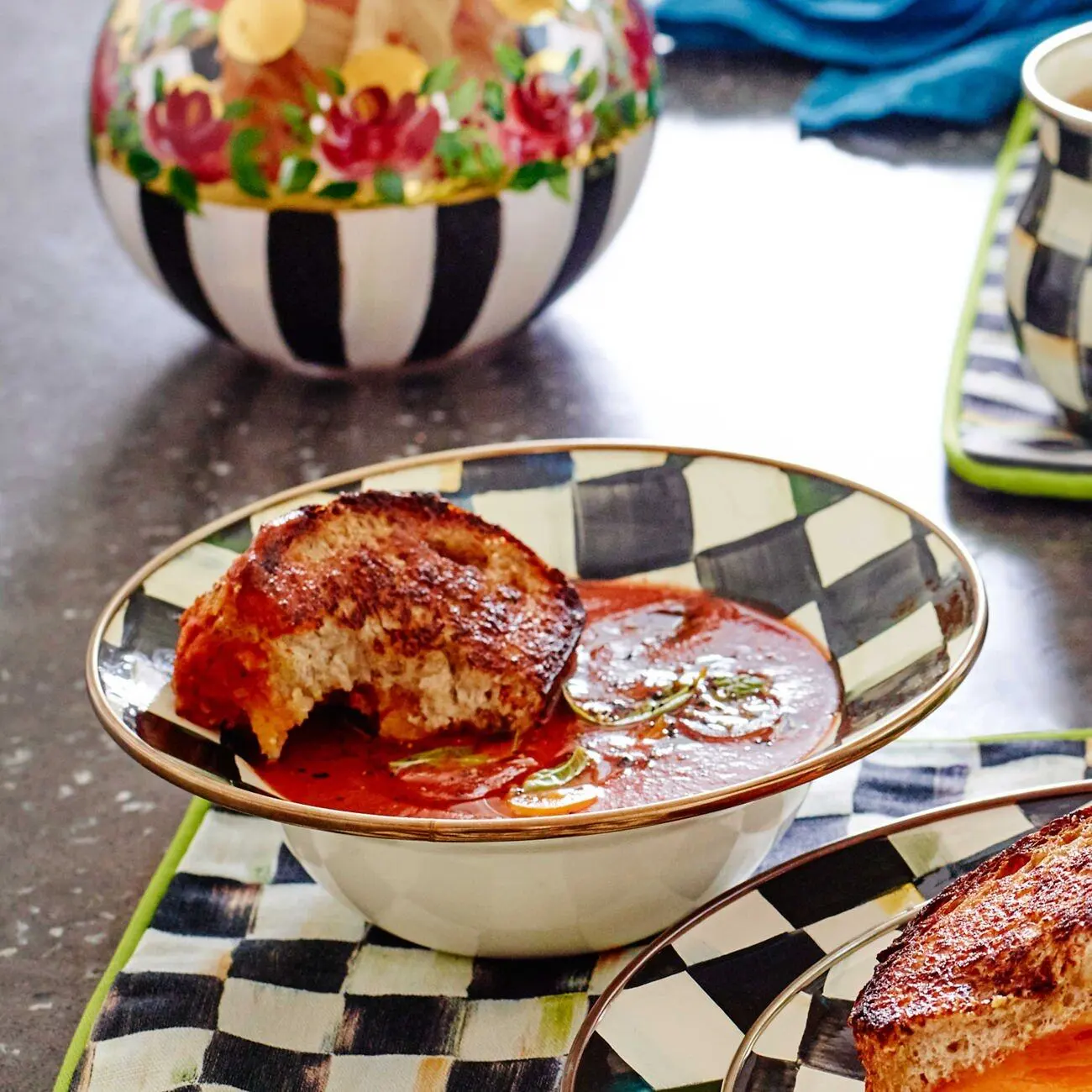 Heavy-gauge, hand-glazed steel underbody with hand-painted Courtly Checks, rimmed in bronzed stainless steel. Pieces may vary due to the handmade nature of each product.