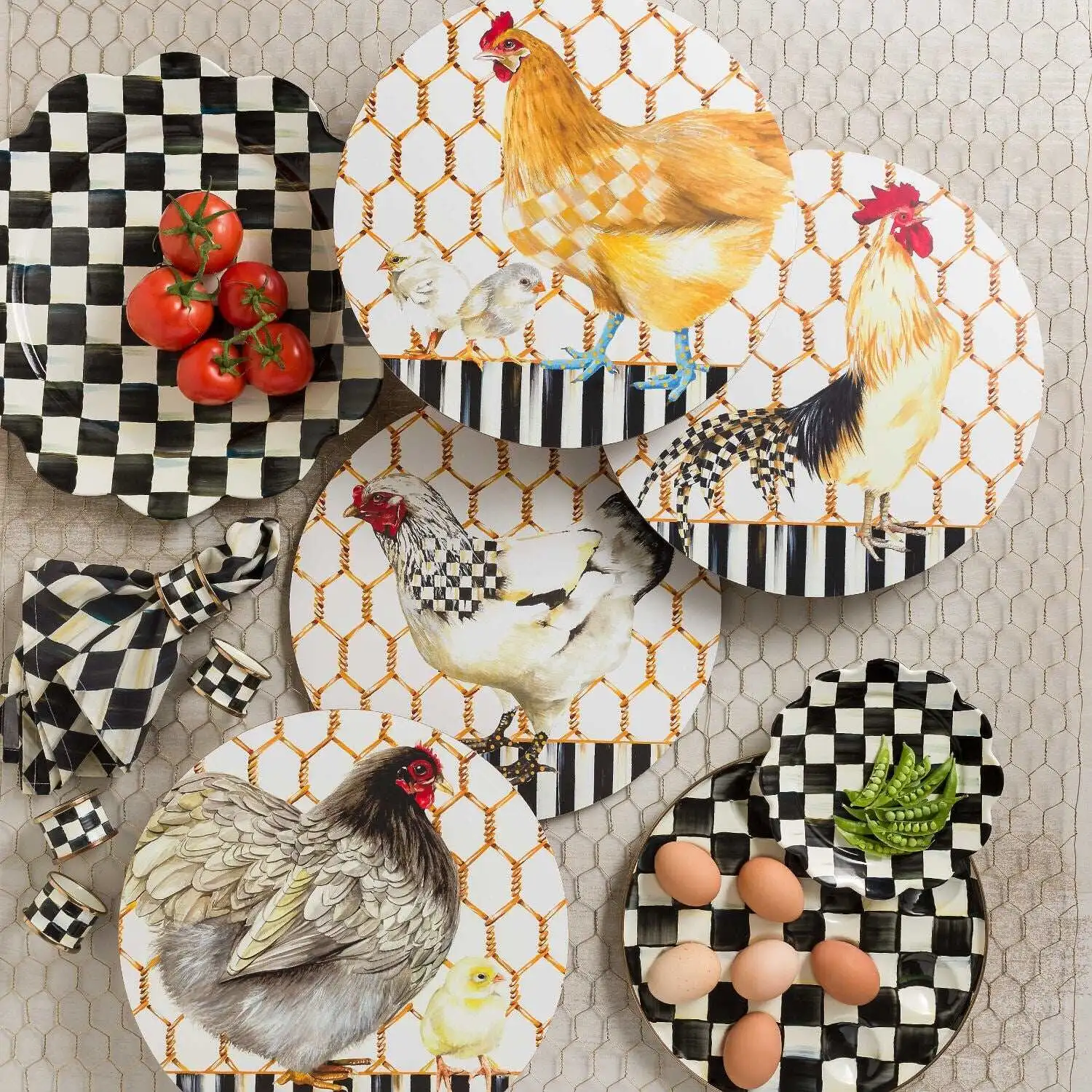 Can��t get enough black and white checks? Add Courtly Check? Enamel Napkin Rings at each place setting! Hand-painted, with a bronzed stainless steel rim; the boxed set of four makes a great hostess gift.