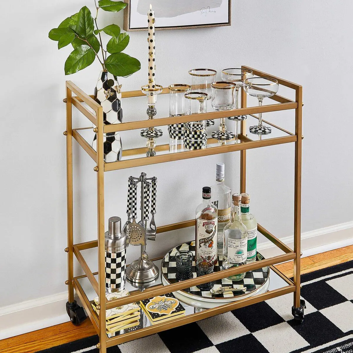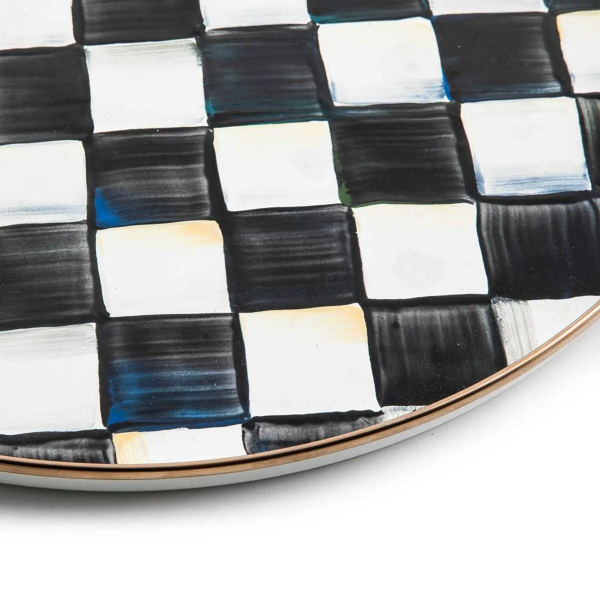 The only thing breezier than a cool cocktail on the screened porch as the summer sun sets, is one served on the Courtly Check? Enamel Round Tray.?The signature checks, hand-painted onto a sturdy steel base, are just the garnish your favorite drink needs. Handy as it is handsome, this entertaining tray is perfect for year-round use, indoors and out. With a subtle jewel-tone palette woven by an artisan��s brush through the glossy, hand-painted, high-contrast checks, we��ve yet to find a color (or food!) that doesn��t look good with Courtly Check?.