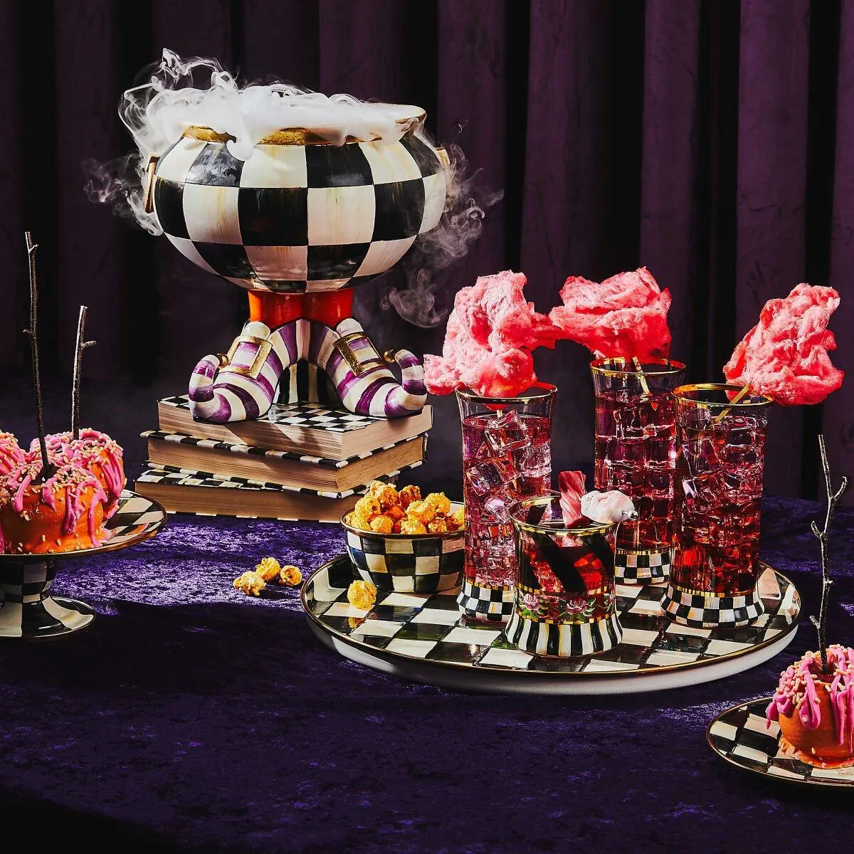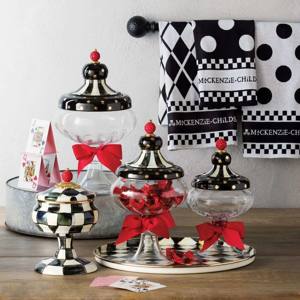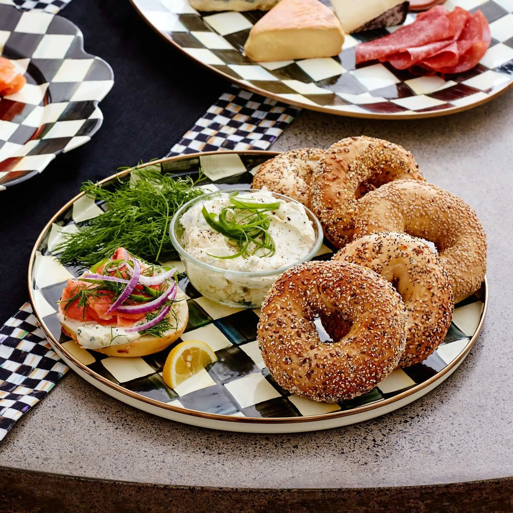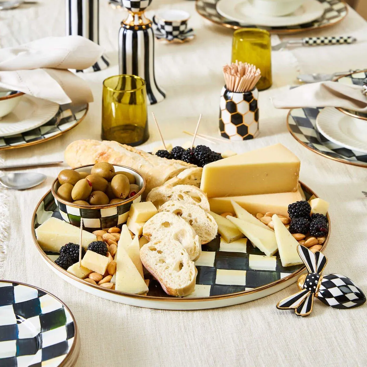 Heavy-gauge, hand-glazed steel with hand-applied Courtly Check decoration and bronzed stainless steel rim. Pieces may vary due to the handmade nature of each product.