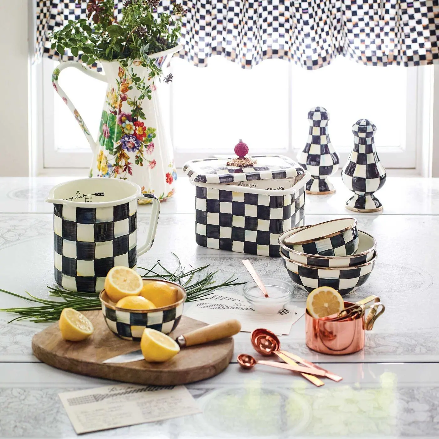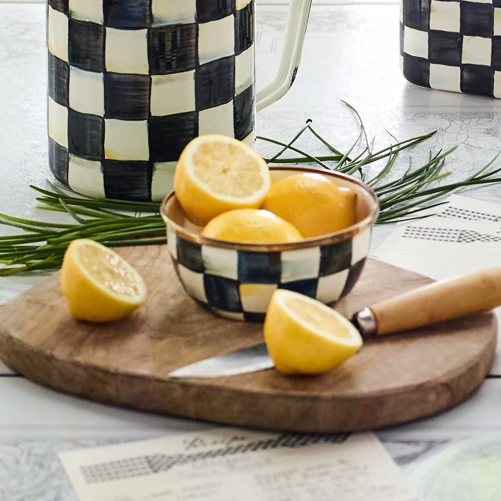 For masters of mise en place, our Courtly Check? Enamel Pinch Bowl makes prep work a stylish snap. With its just-right size and our signature pattern, this petite pot is equally charming when brimming with paper clips in a home office or lemon wedges on the wet bar.
