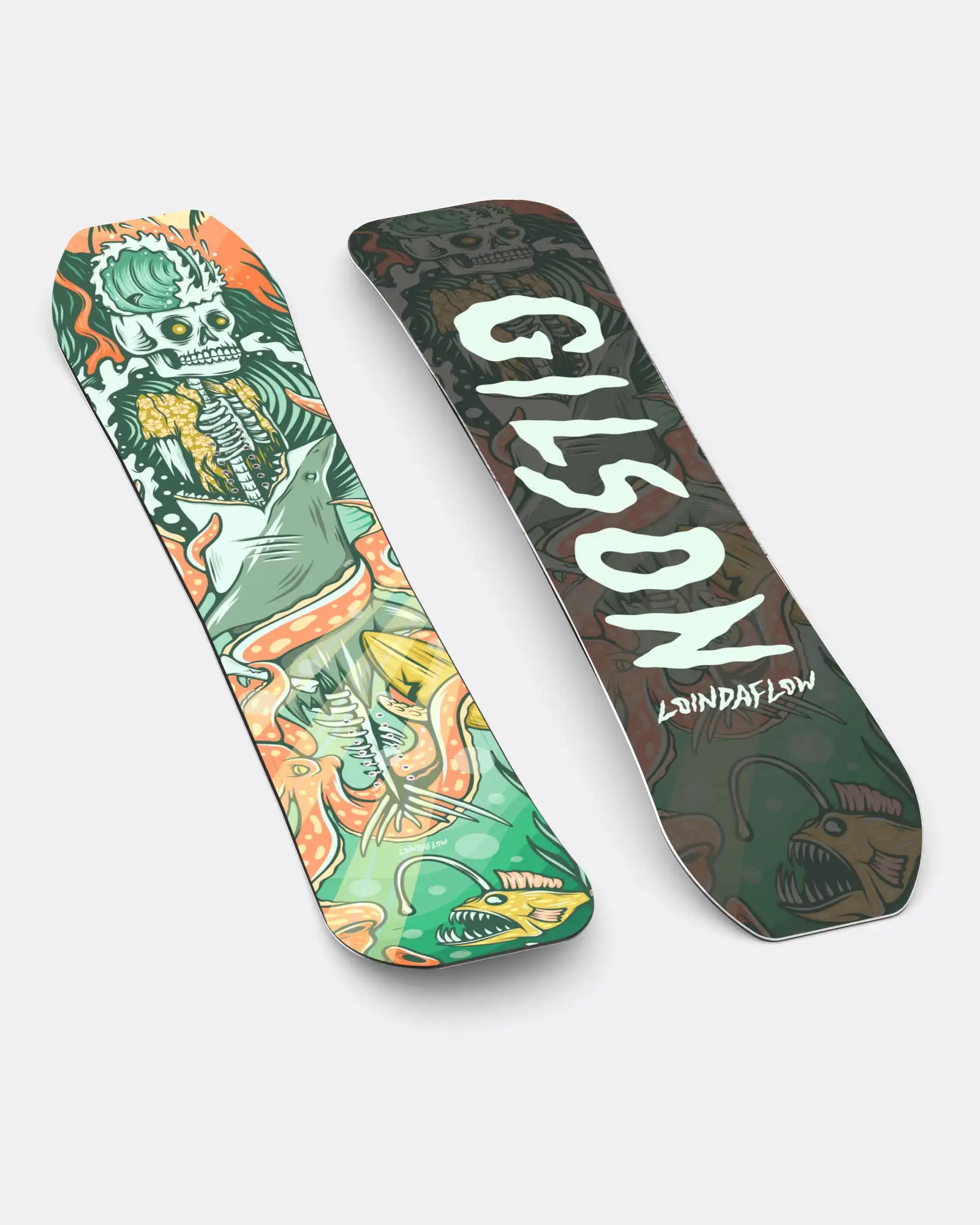 Take the plunge with the Deep Sea Limited Edition Freestyle Flat-to-Rocker Snowboard, a bold collaboration with LOINDAFLOW. Featuring wild underwater-inspired artwork, this board captures the spirit of the ocean and the thrill of the ride. Built on GILSON’s original Flat-to-Rocker Freestyle design, it delivers buttery smooth performance, tons of flex and pop, and a forgiving, catch-free feel that accelerates your progression. Handcrafted in the USA and backed by a 5-year warranty, this board is made to stand out on the mountain and keep you stoked all season long.