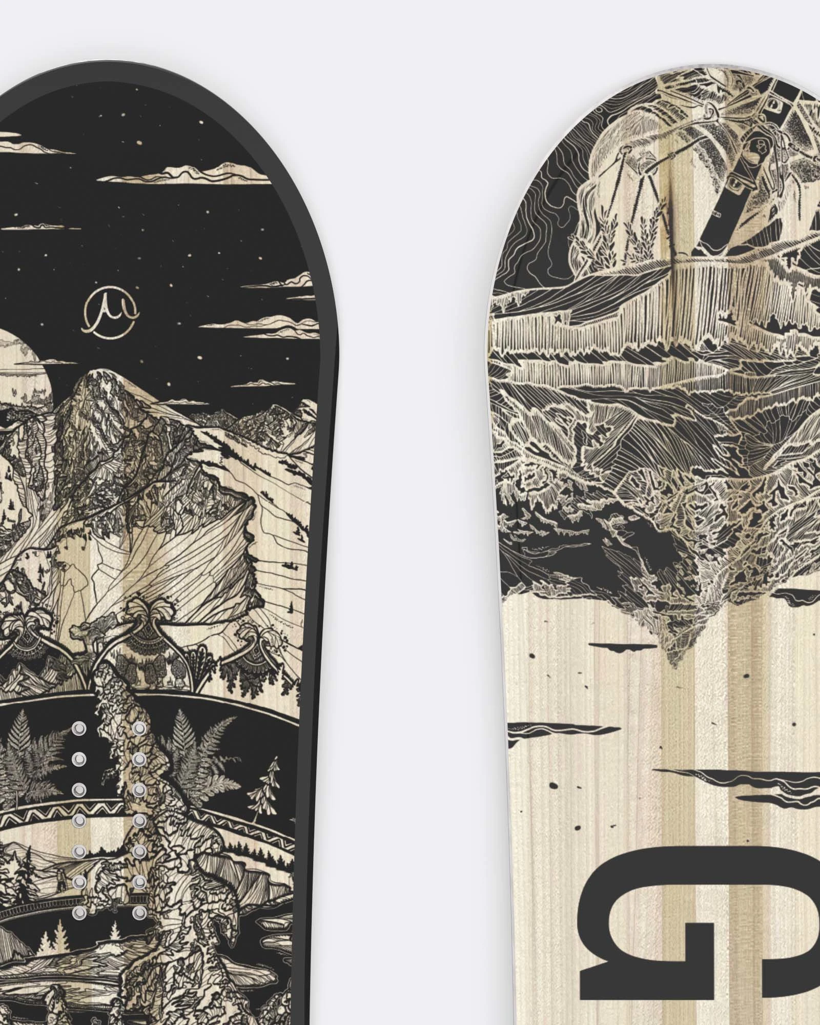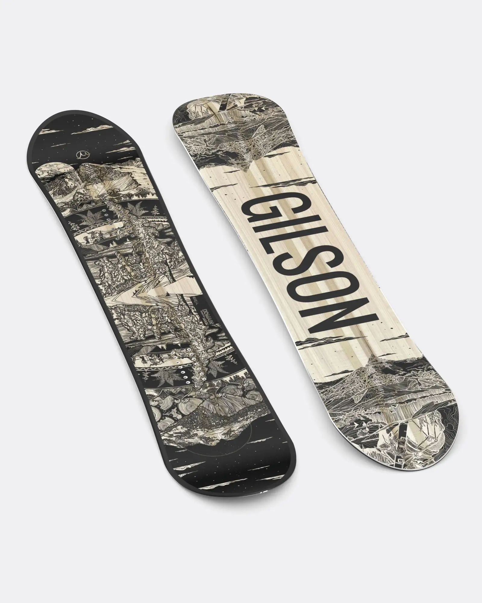 The Domain – Revelstoke Edition pays tribute to the legendary terrain of British Columbia. With artwork by Kate Zessel showcasing the rugged beauty of Revelstoke’s peaks and forests, this all mountain hybrid camber snowboard is built for riders who live for adventure. Gilson’s hybrid camber profile gives you precise edge hold, smooth float in powder, and playful versatility, making it the perfect companion for everything from deep backcountry lines to resort laps.