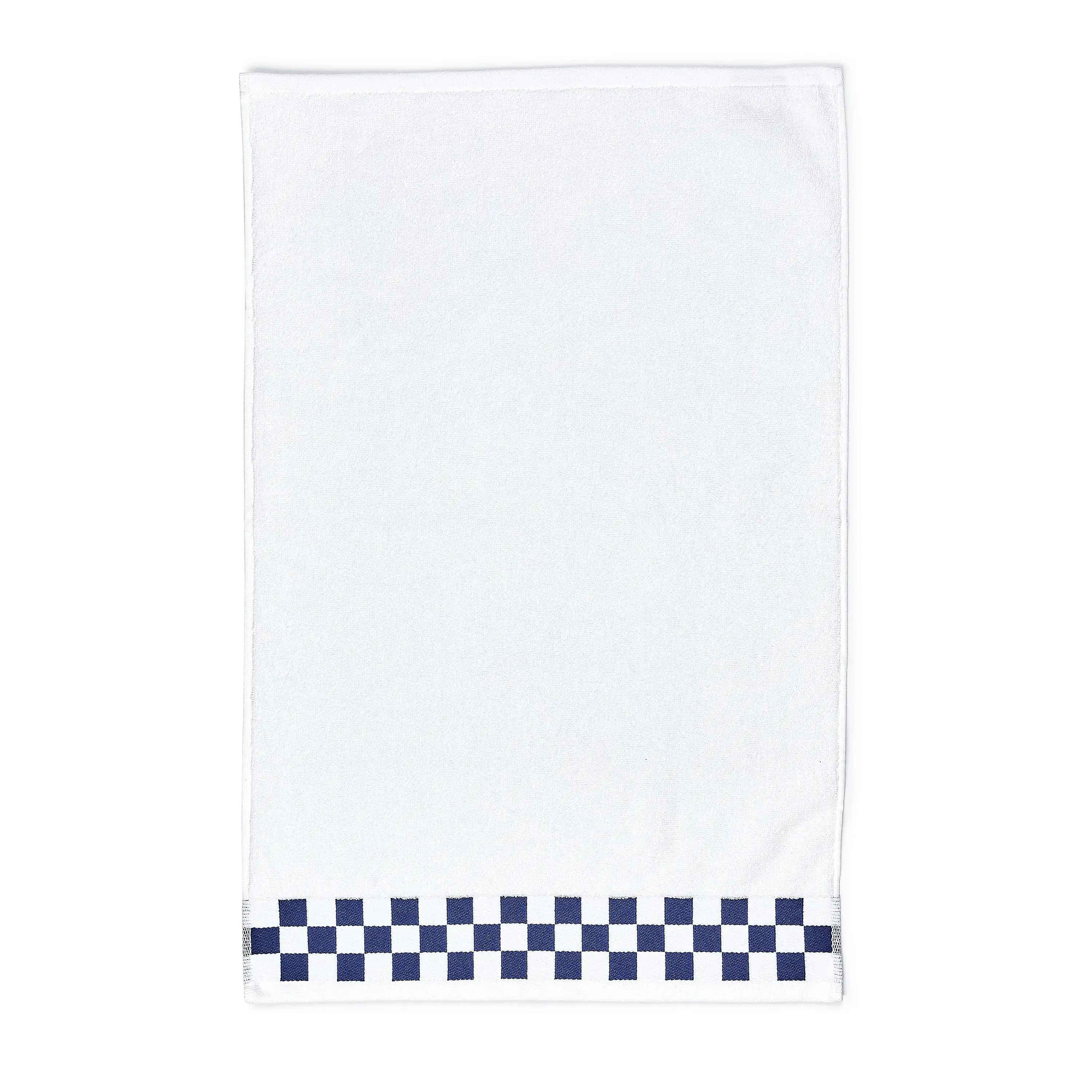 Make a splash with the plush feel and elegant checks of this Hand Towel with Navy Check Border. Made of soft cotton terrycloth and trimmed with refined navy and white checks. Give your bath an instant makeover and turn scrubbing up into something spectacular.