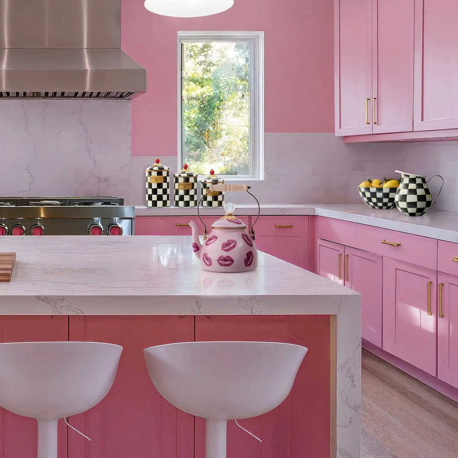 Suit your personali-tea with The Tea Kettle Collective. Pucker up for the Kiss Me 2 Quart Tea Kettle, featuring pretty-in-pink lips on a heavy-gauge steel underbody, finished with a wood handle and clear glass knob on the lid. Each special-edition Collective kettle makes a great cup of tea, of course, and adds MacKenzie-Childs style to your stovetop. Don’t be surprised that you need more than one.