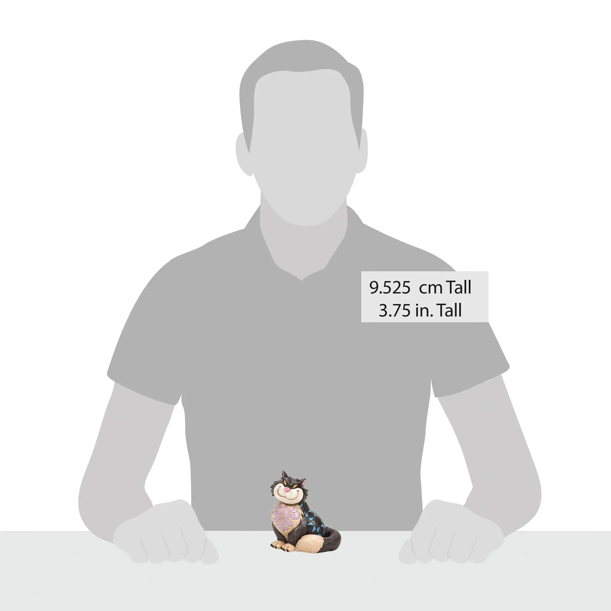 Lucifer the cat is Lady Tremaine's evil sidekick. With a wicked personality, Lucifer is cruel to Cinderella and her mice friends. This Jim Shore design features the cat's signature sneer with rosemale and patchwork patterning on his fur.