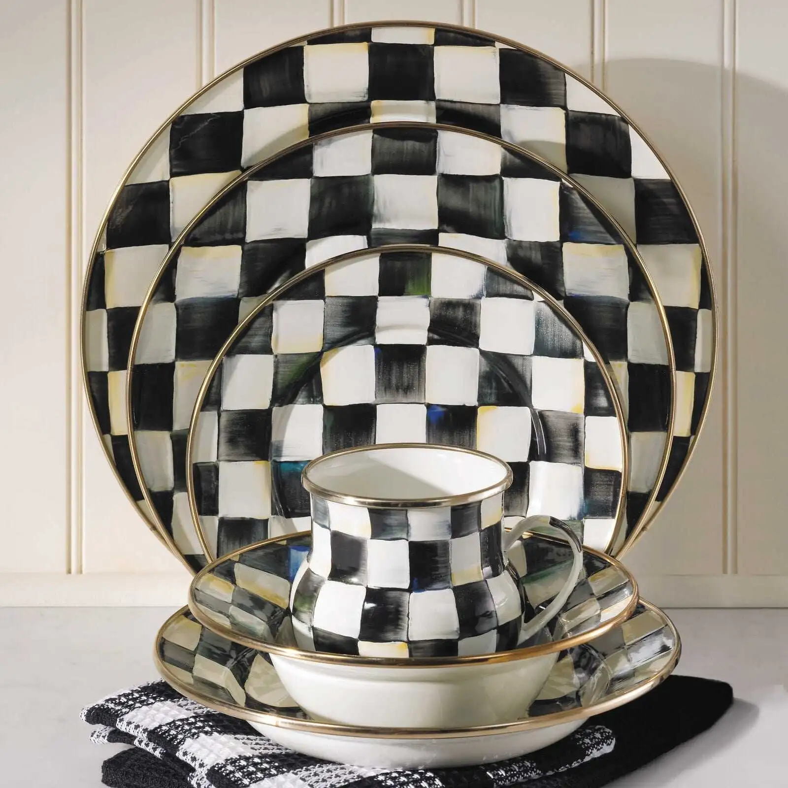 Add a little drama to your dishes with Courtly Check? Enamel Dinner Plate.