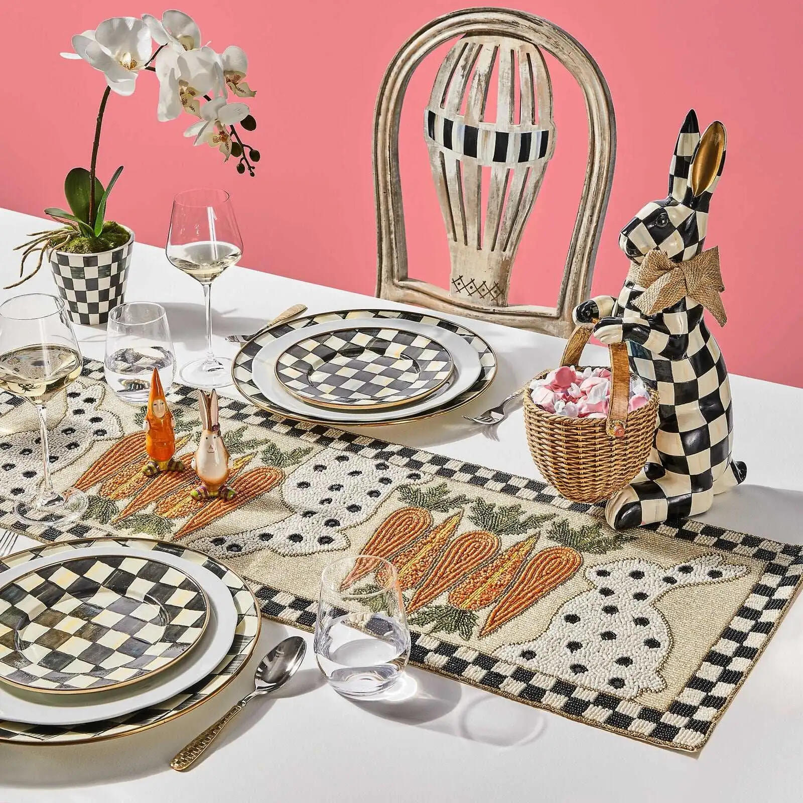 Heavy-gauge, hand-glazed steel underbody with hand-painted?Courtly Checks, rimmed in bronzed stainless steel. Pieces may vary due to the handmade nature of each product.?