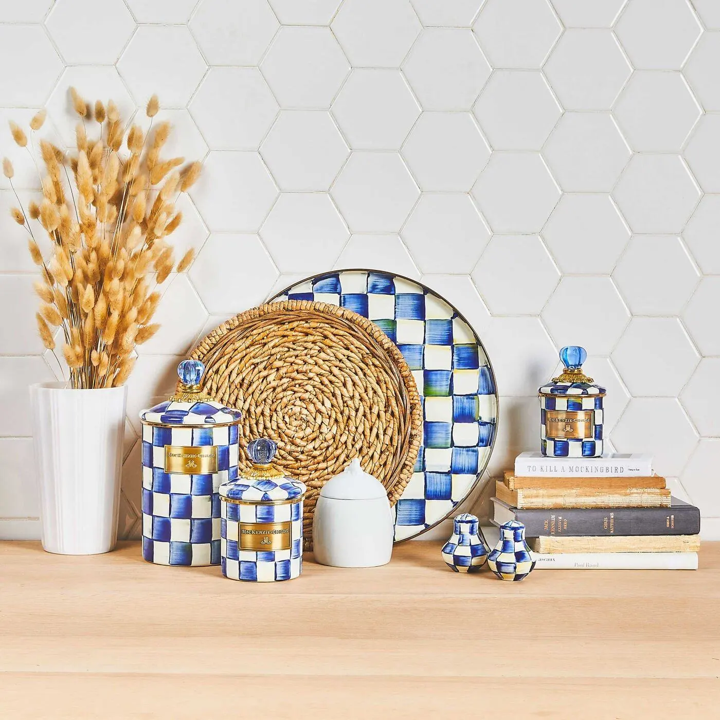 Our blue checks, hand-painted onto a sturdy steel base, are just the garnish your favorite drink needs.