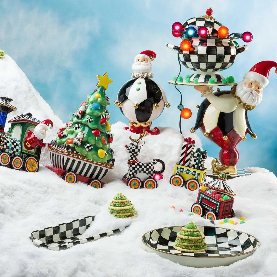 Heavy-gauge, hand-glazed steel underbody with hand-painted Courtly Checks, rimmed in bronzed stainless steel. Pieces may vary due to the handmade nature of each product.
