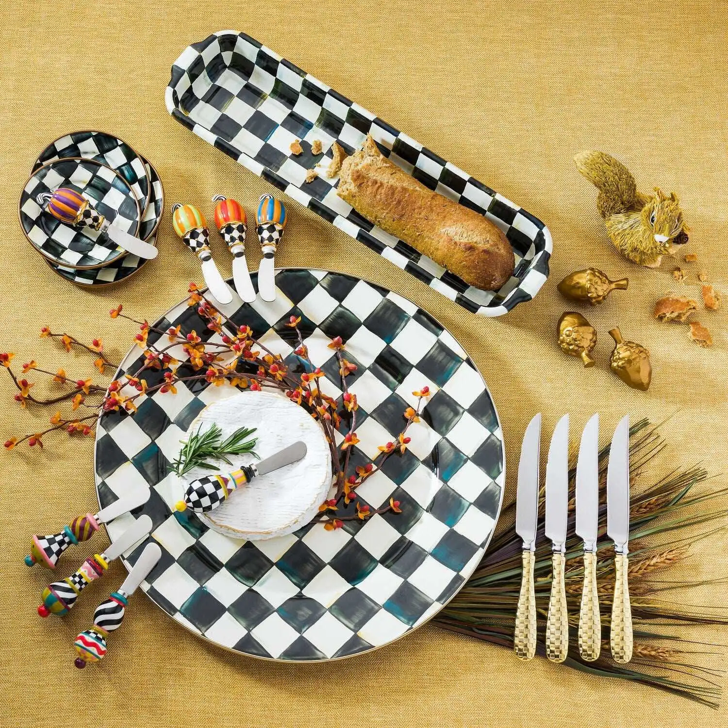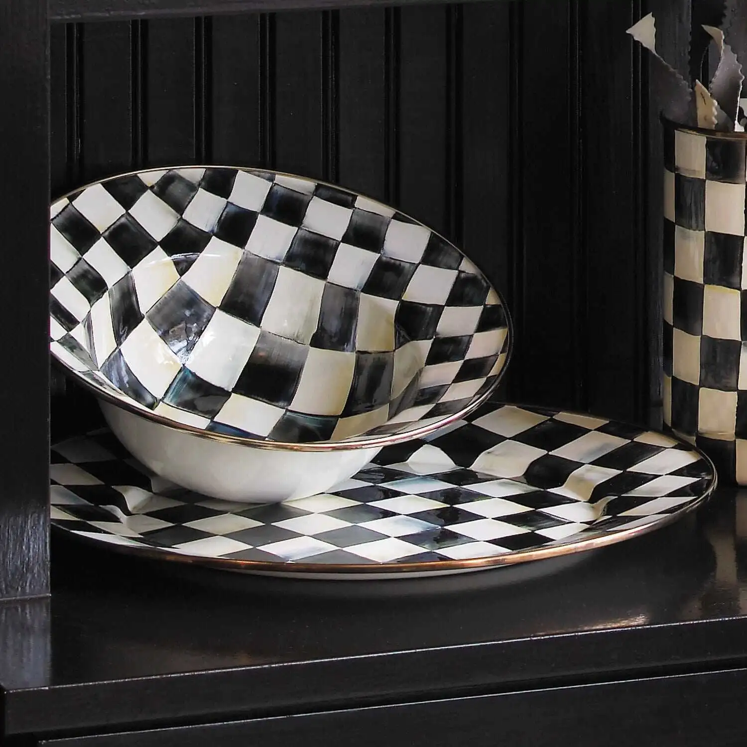 Pile our Courtly Check? Enamel Serving Platter high with blueberry pancakes for Sunday brunch, crudit��s for a neighborhood picnic, or sugar cookies frosted with team colors for the big game. When not in use-which won��t be often-hang it on the wall for a splash of Courtly Check? color. With a subtle jewel-tone palette woven by an artisan��s brush through the glossy, hand-painted, high-contrast checks, we��ve yet to find a color (or food!) that doesn��t look good with Courtly Check. The best platter ever!