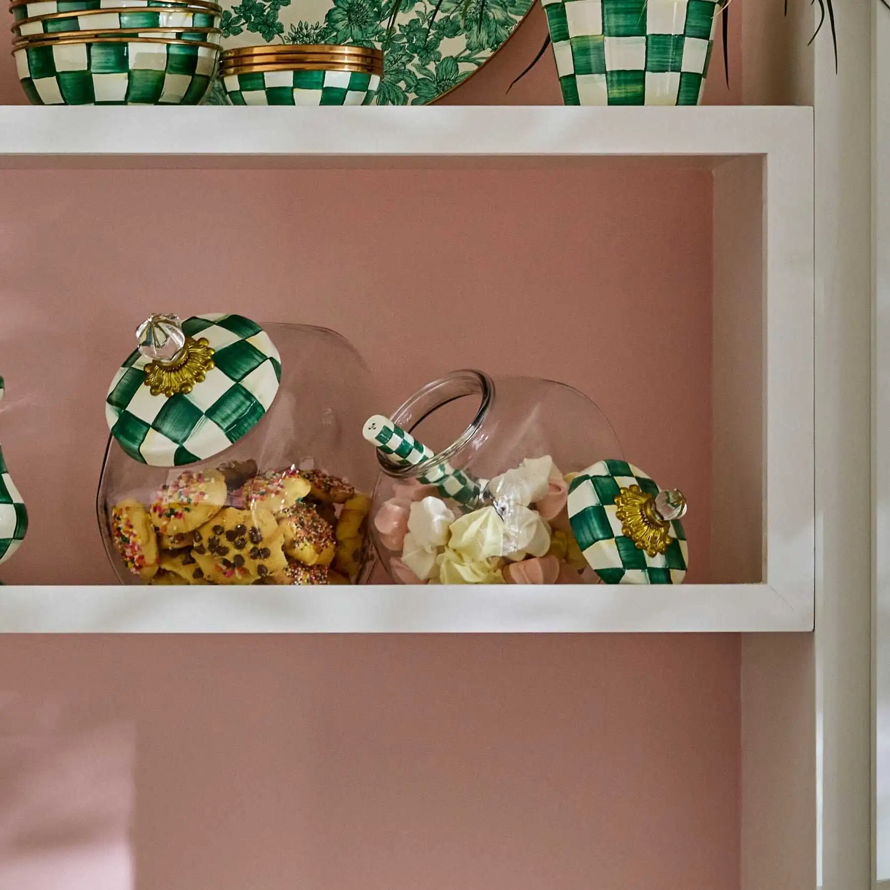 Here��s the scoop on our Emerald Check Small Scoop. It��s just the right size for our glass cookie jars with enamel lids, making it so convenient to get to baking staples, dog biscuits, or whatever you put in these versatile storage containers. The enameled handle features hand-painted Emerald Check, topped with a stainless-steel scoop.
