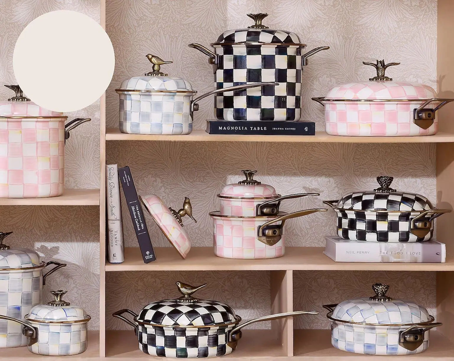 Mackenzie-Childs Rosy Check Enamel Stockpot