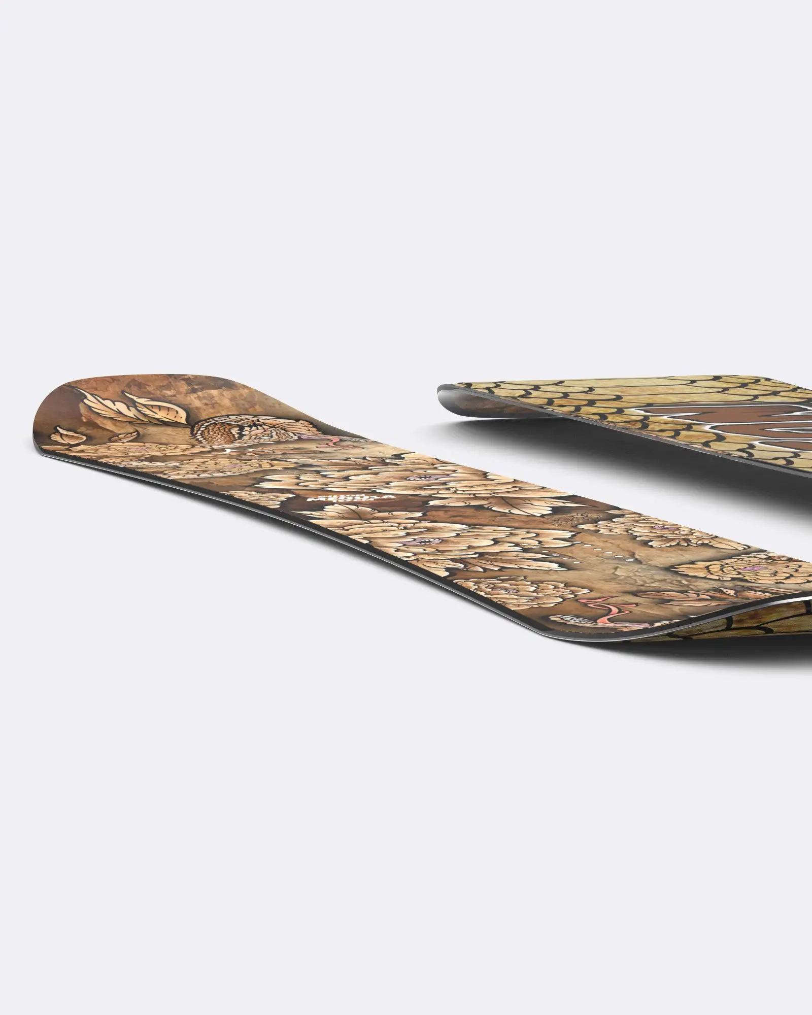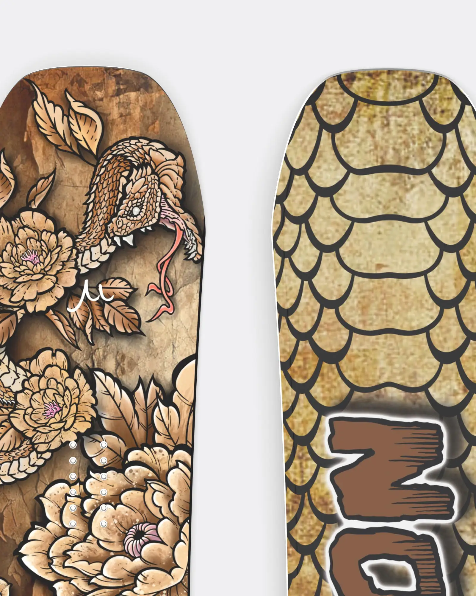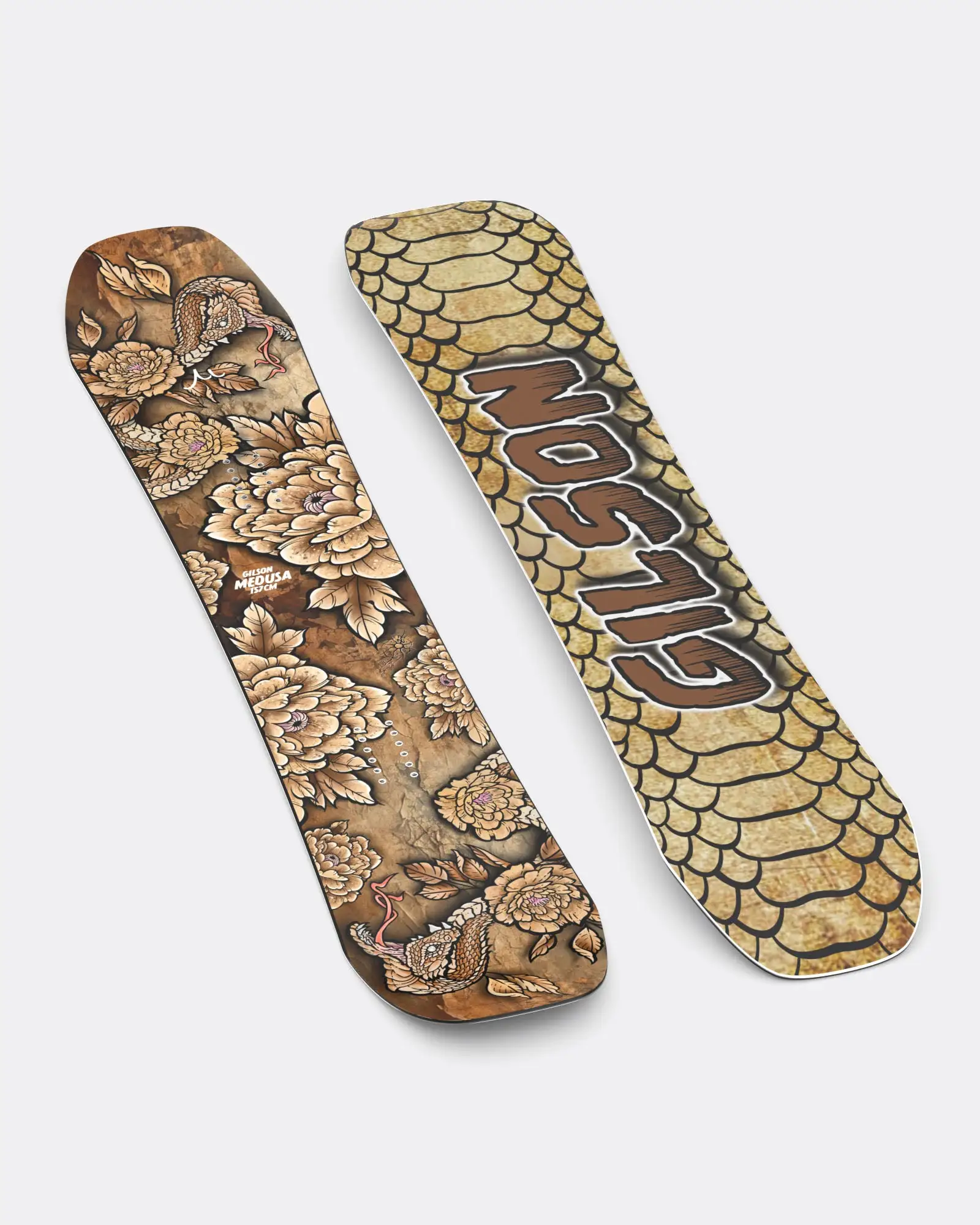 Our latest collaboration with Colorad-based tattoo artist, painter and storyteller - Sean Ozz, is built on our full camber twin snowboard model. Featuring Sean's iconinc art style on our most aggressive carving stick, the Medusa is ready to go fast.