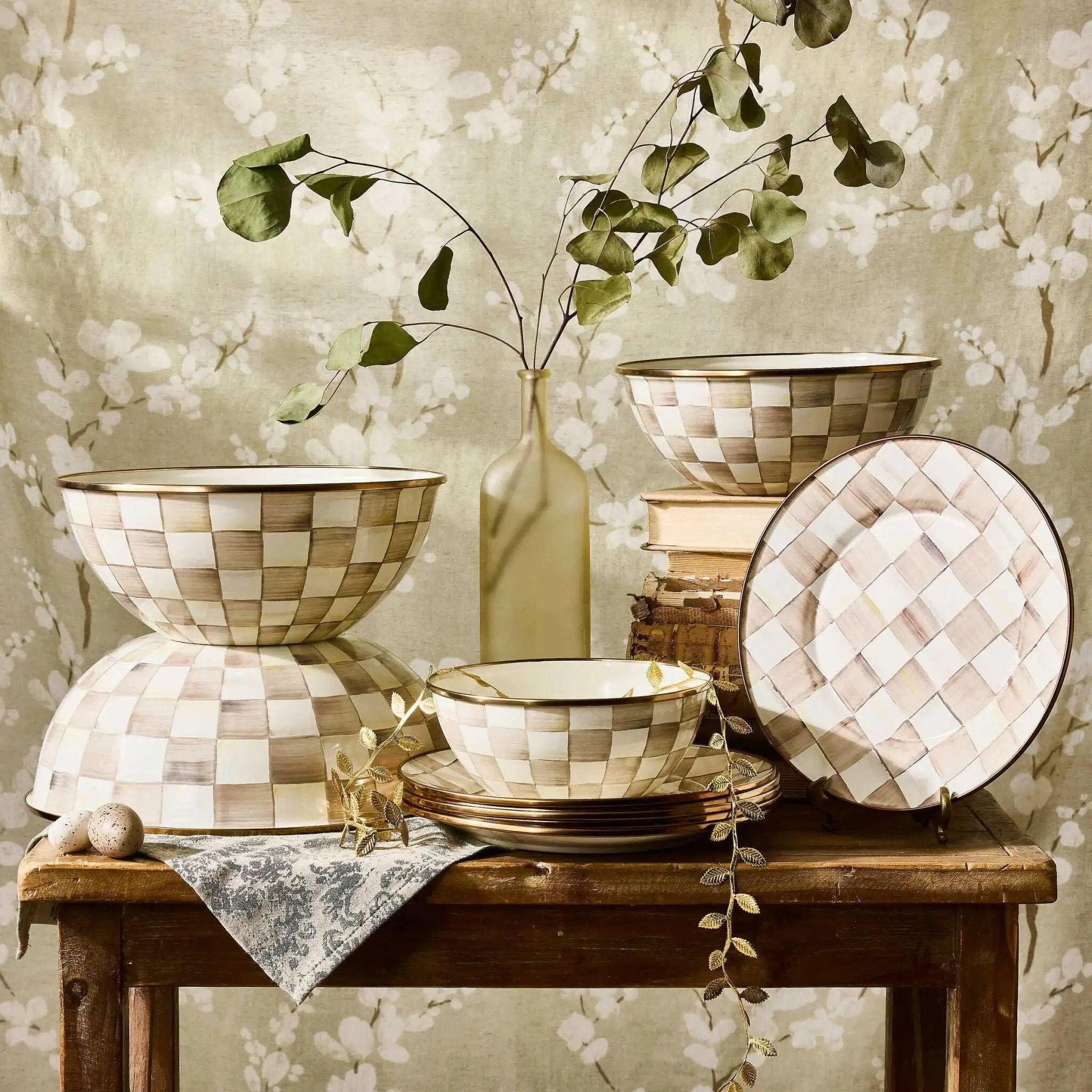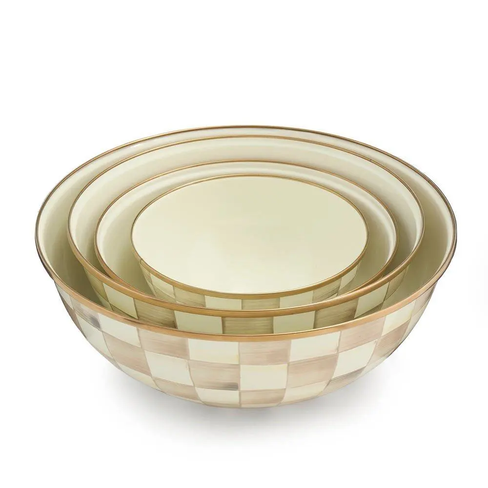 When it comes to our Mocha Check Large Everyday Bowl, the name says it all. The perfect size for year-round use, it��s decorated with hand-painted, coffee-colored checks on a heavy-gauge, hand-glazed steel underbody, rimmed with bronzed steel. Nest it with the Small, Medium, and Extra Large Mocha Check Everyday Bowls, and you��ll be ready for every kitchen task.
