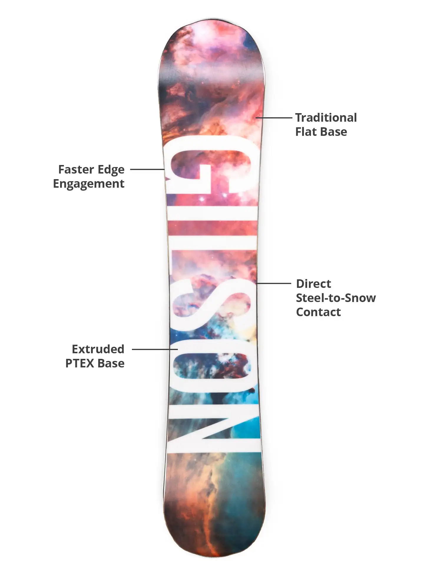 The Moonwalker is part of GILSON’s Happy Hour Series, blending cosmic-inspired artwork with reliable all-mountain performance. Featuring our Pop-Camber profile, durable construction, and approachable design, this board is built for progression while keeping things fun and affordable. Whether you’re carving groomers, charging through variable terrain, or just cruising with friends, the Moonwalker is ready to launch every ride into orbit. One of the three Happy Hour boards built in our partner factory in Taiwan.