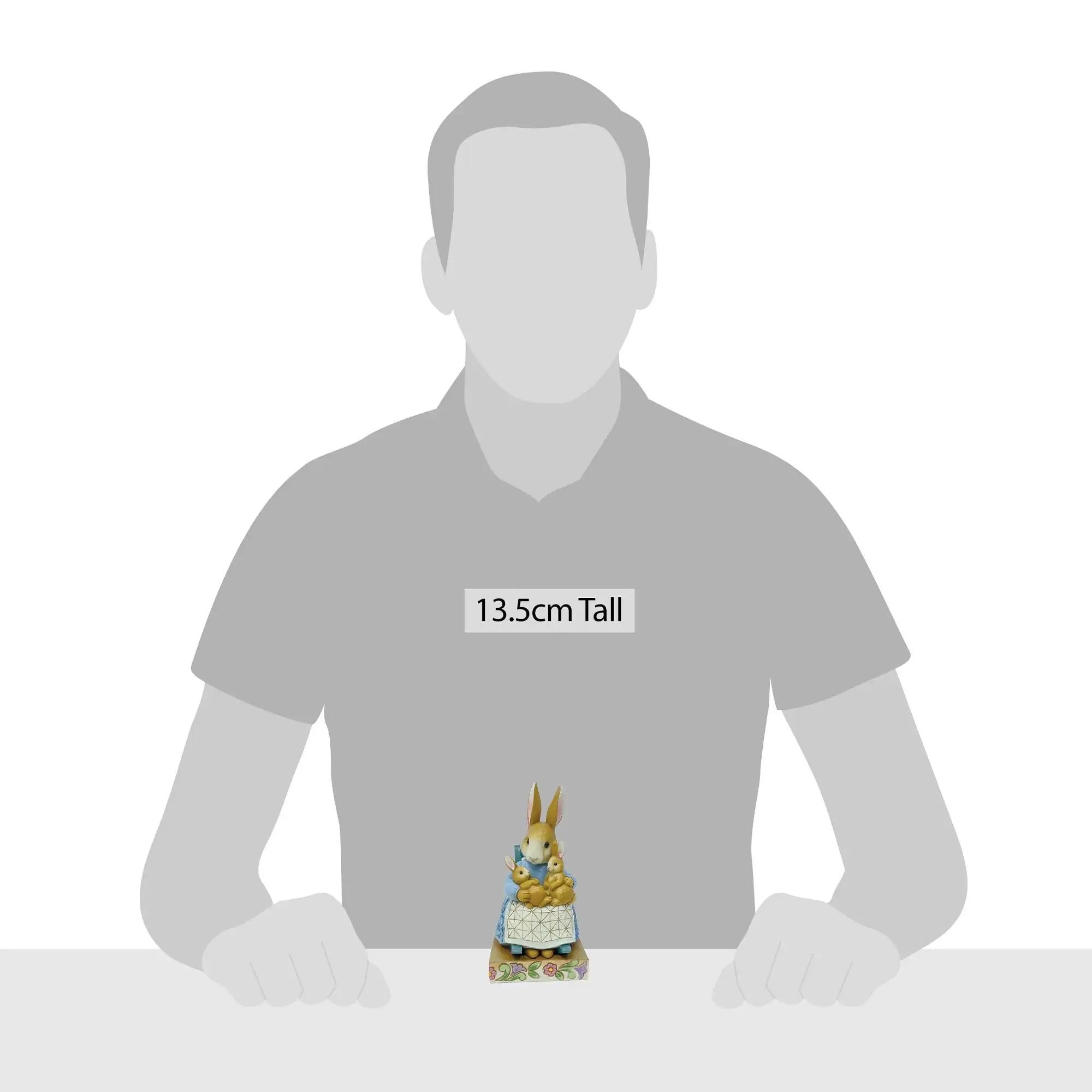Snuggled against their mother's chest, two baby bunnies snooze soundly as Mrs. Rabbit watches over lovingly. Adapted directly from the page, Jim Shore brings this Peter Rabbit illustration to life with caring craftsmanship and endearing detail.