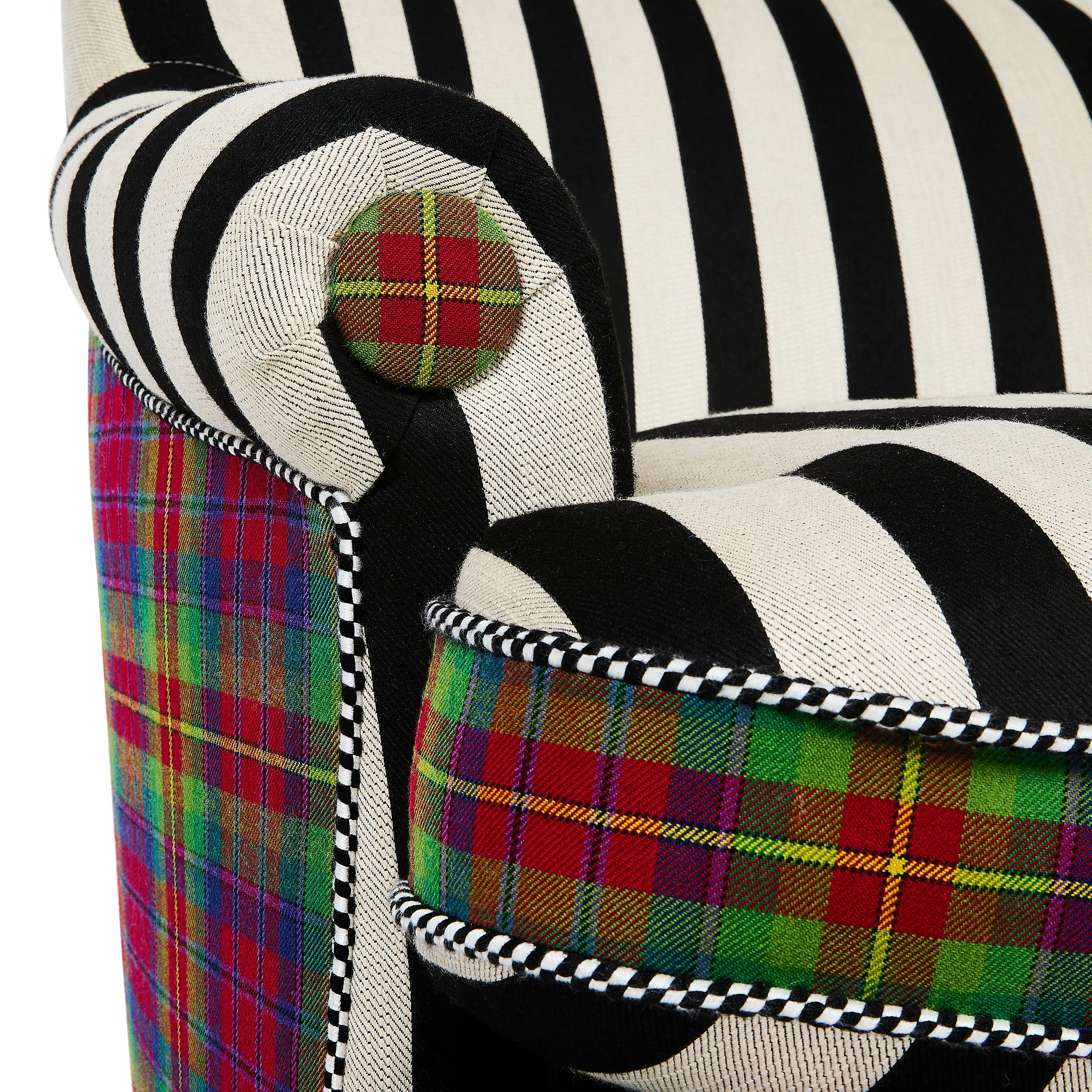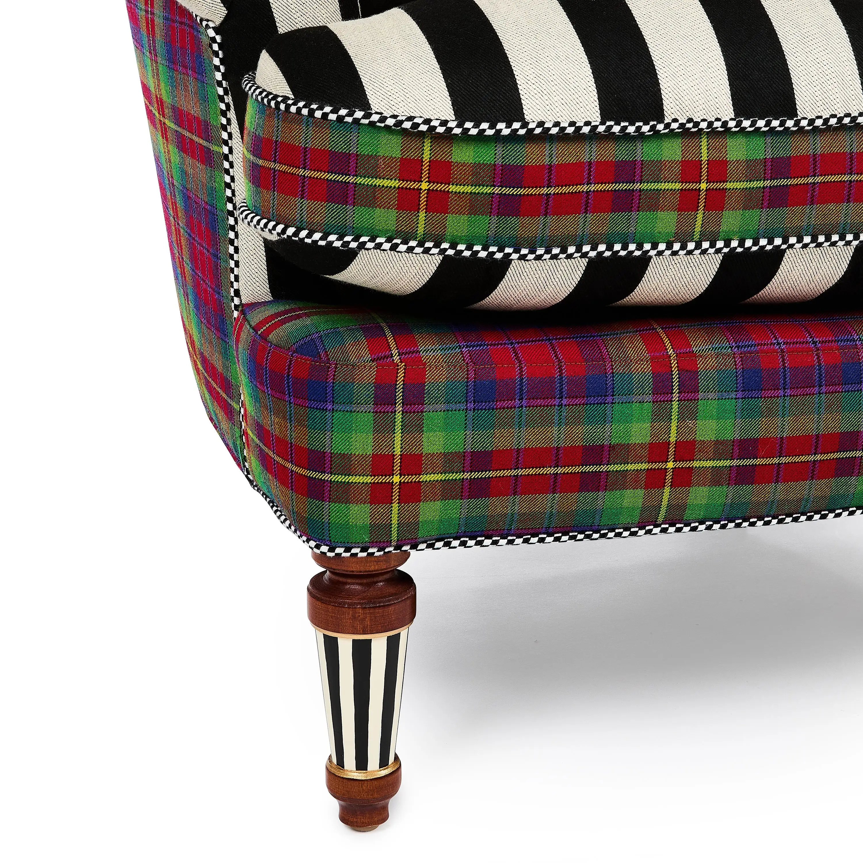 The On Wall Street Accent Chair is classic MacKenzie-Childs. It pairs two of our favorite fabrics¡ªthe MacKenzie tartan and the oversized stripe of the On Wall Street Setting Seat¡ªon a carved hardwood frame that¡¯s accented with hand-painted details from our Aurora artisans.