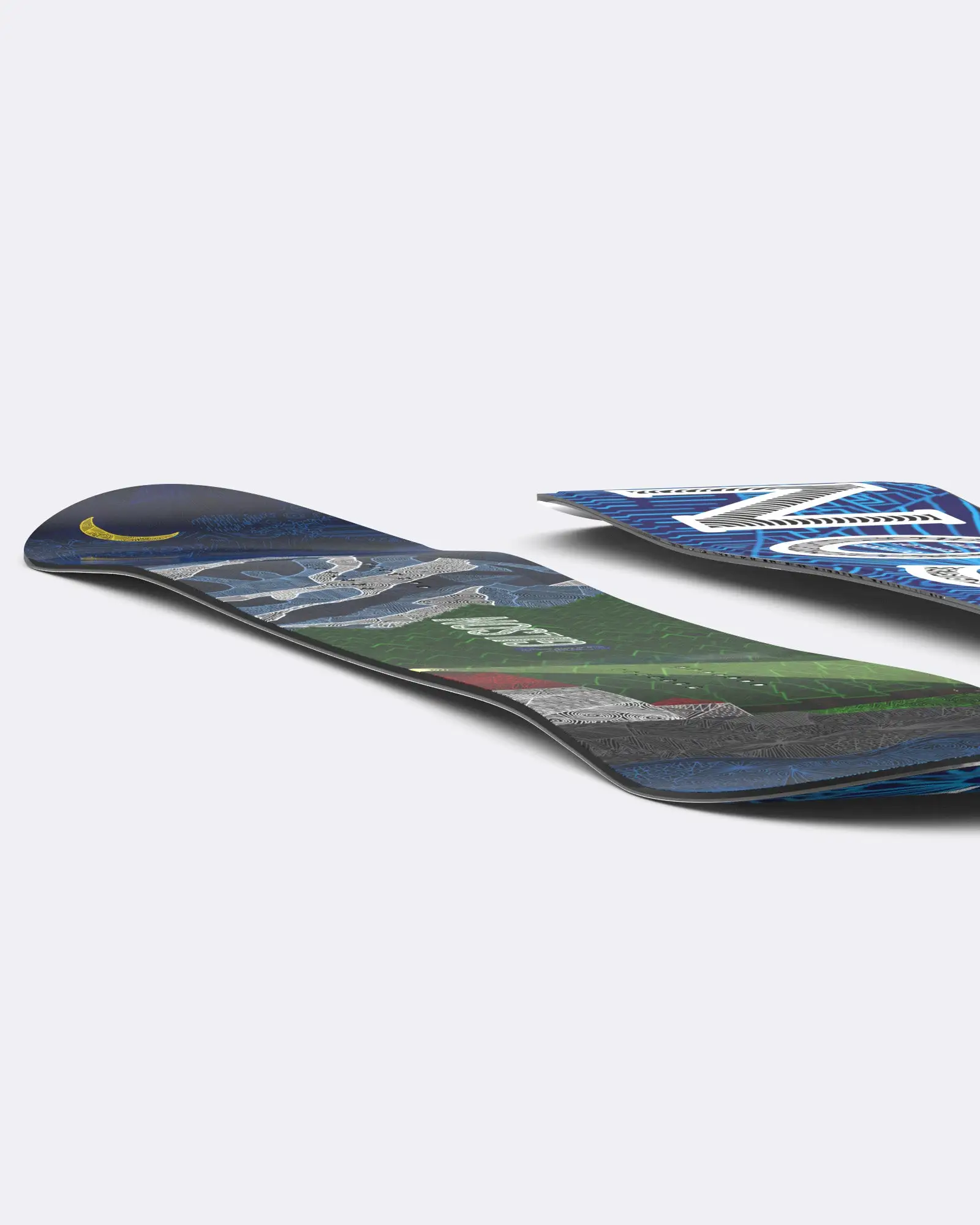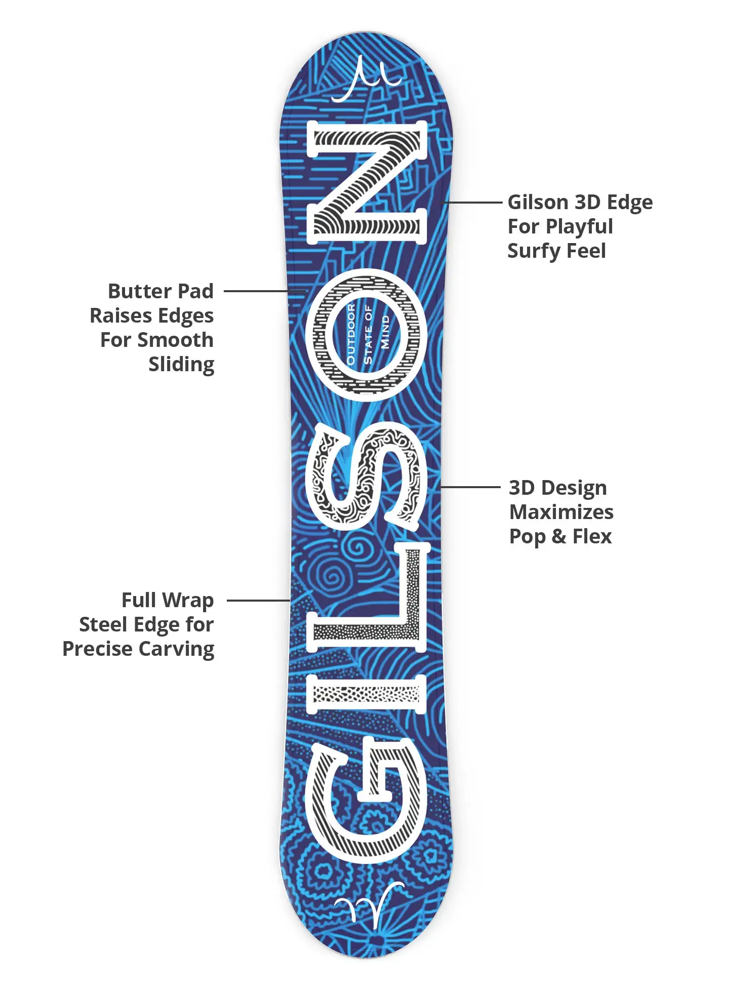 The Outdoor State of Mind snowboard is a celebration of nature, freedom, and artistry. Featuring the intricate linework of Liam Cromie, this board brings the mountains to life under your feet. Built on Gilson’s most versatile Hybrid Camber All Mountain model, it’s designed to thrive on groomers, in powder, and everywhere in between. Whether you’re exploring new terrain or just soaking up the ride, this board blends performance and style for an unforgettable experience.