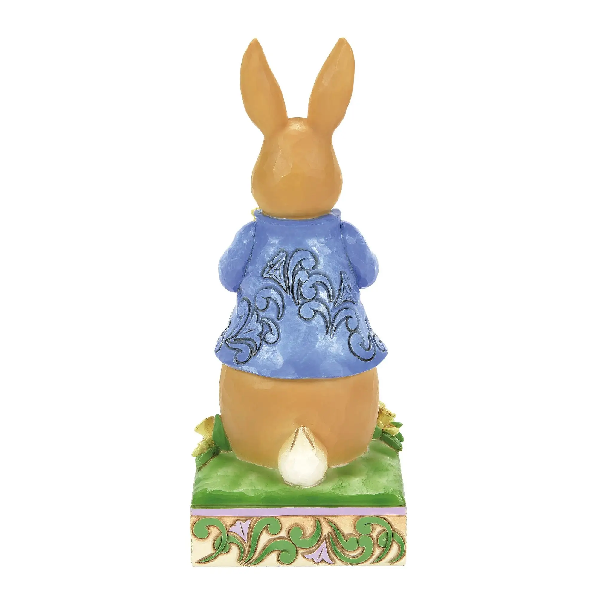 Wearing his signature blue coat, Peter Rabbit blushes as he presents a bouquet of daffodils picked for you in this sweet design. Styled by Jim Shore, Peter's coat boasts rosemale petals as he stands on a decorated stage of springtime growth.