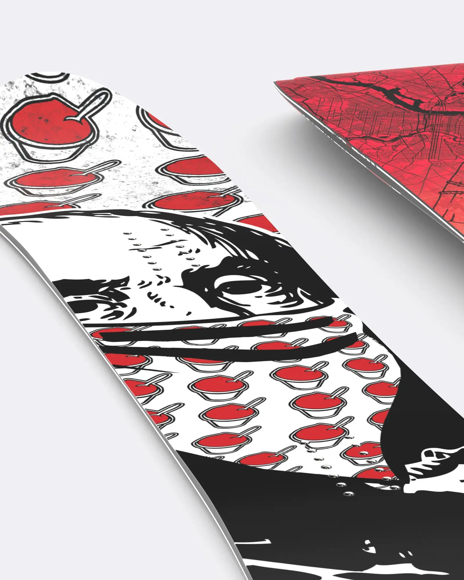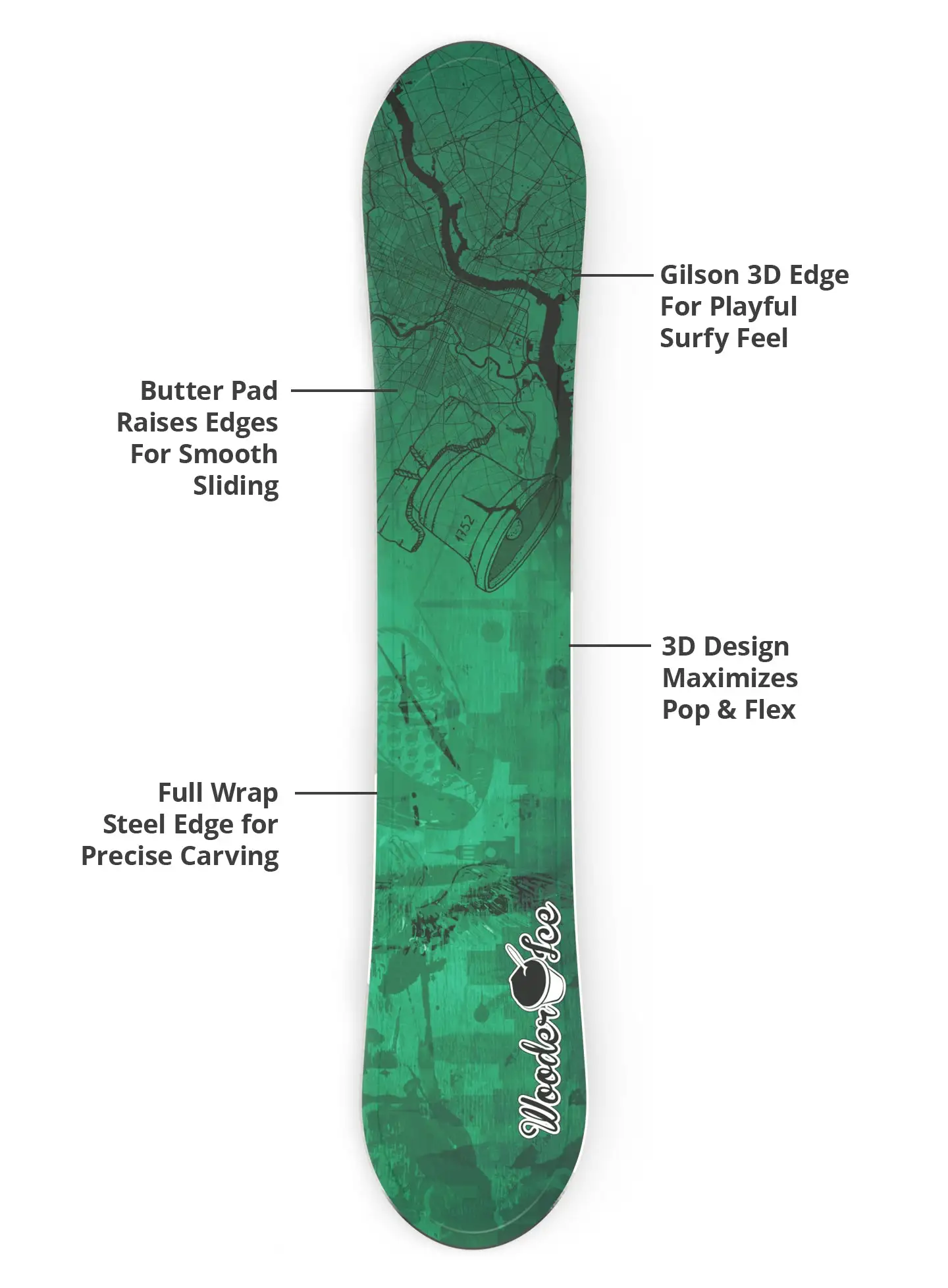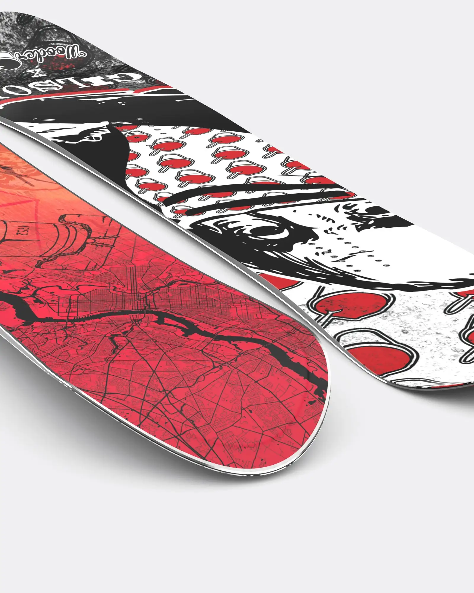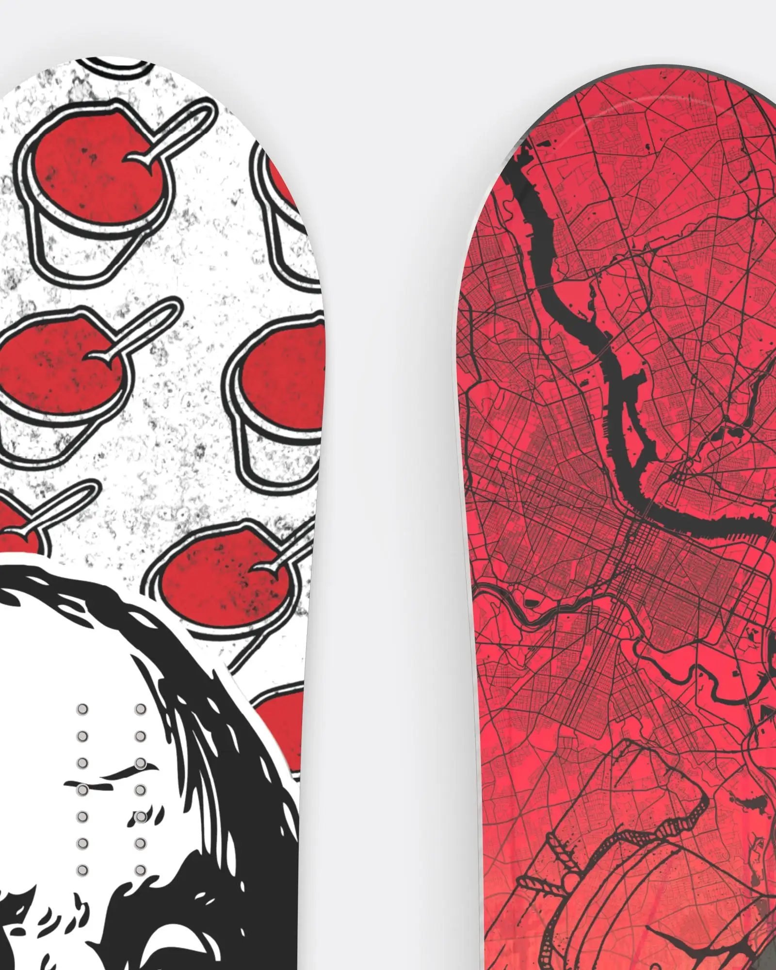 The Philly Special Snowboard is a bold collaboration with Philadelphia’s own Wooder Ice, celebrating the city’s grit and creativity. Featuring Philly inspired artwork with nods to local culture, this Limited Edition deck brings East Coast pride to the slopes. Built on GILSON’s Hybrid Camber All Mountain model and backed by a 5 year warranty, it delivers smooth surfy performance across powder, groomers, and park laps.