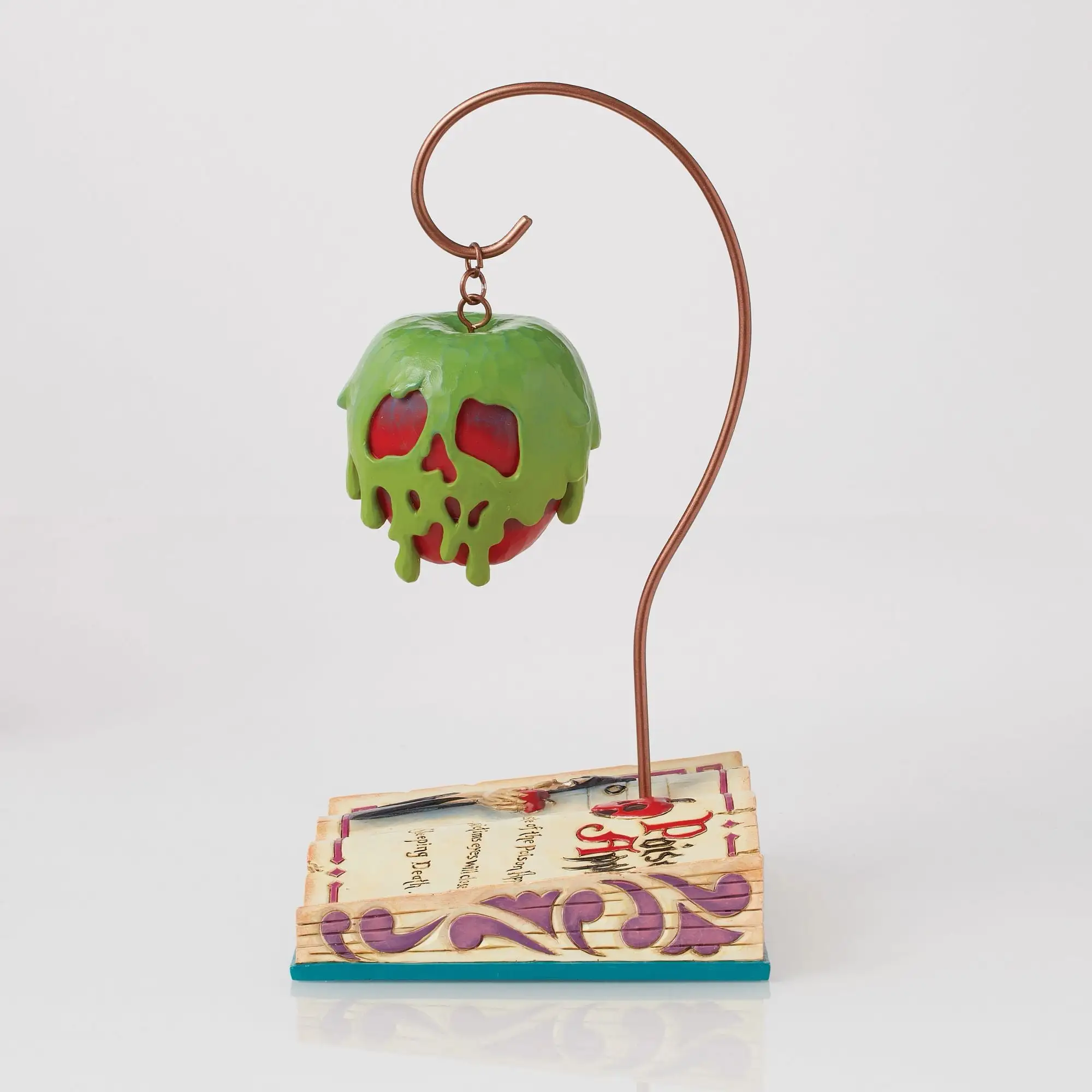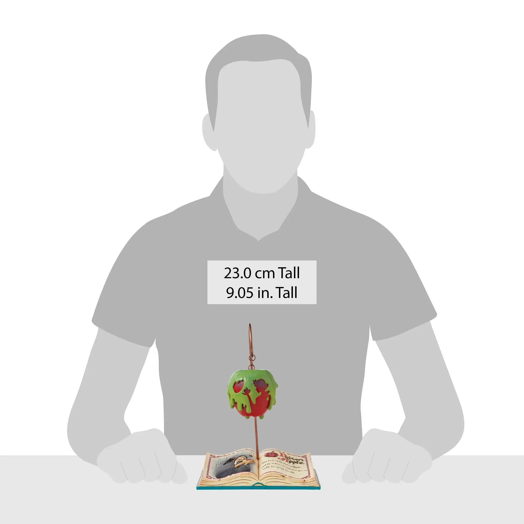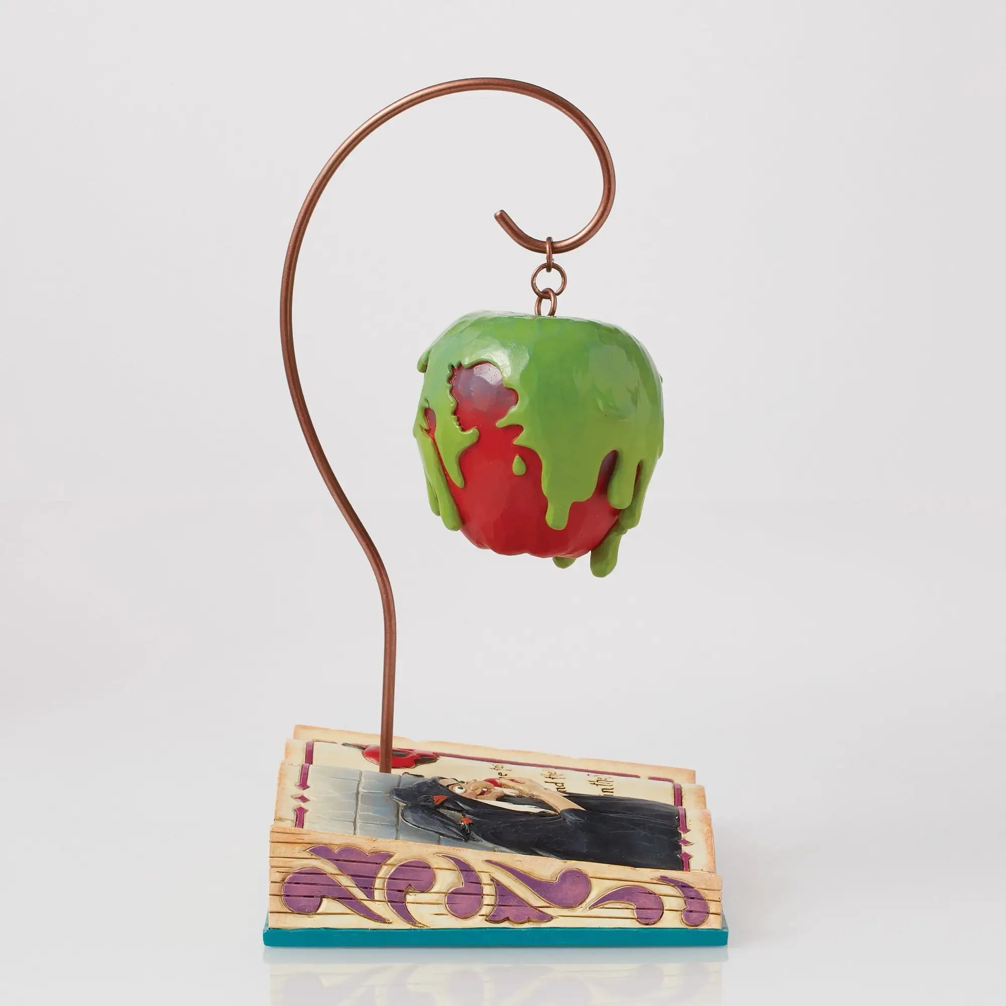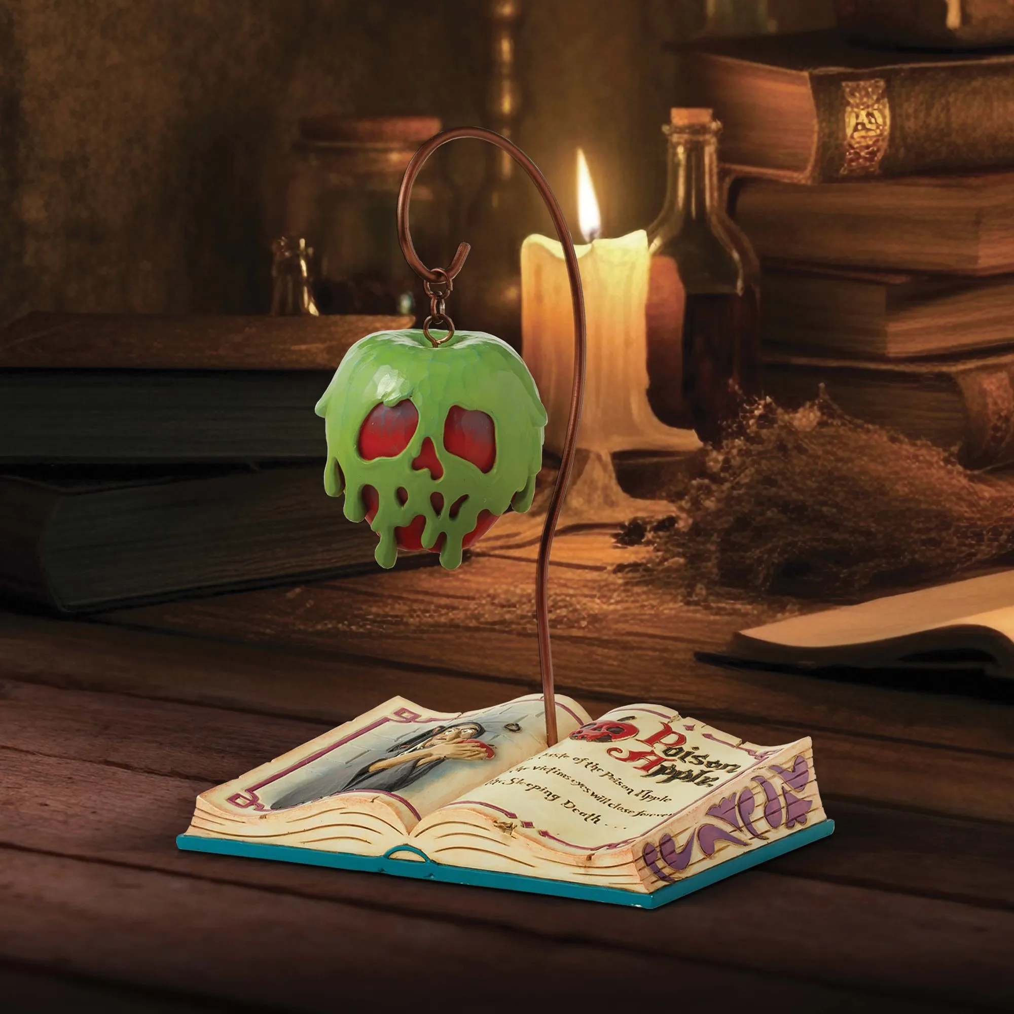 This Jim Shore design features the spell book from Snow White lying open, revealing a page describing the Poison Apple, with an image of the Wicked Witch accompanying the text. Suspended from a wire extending out from the book is the apple itself!