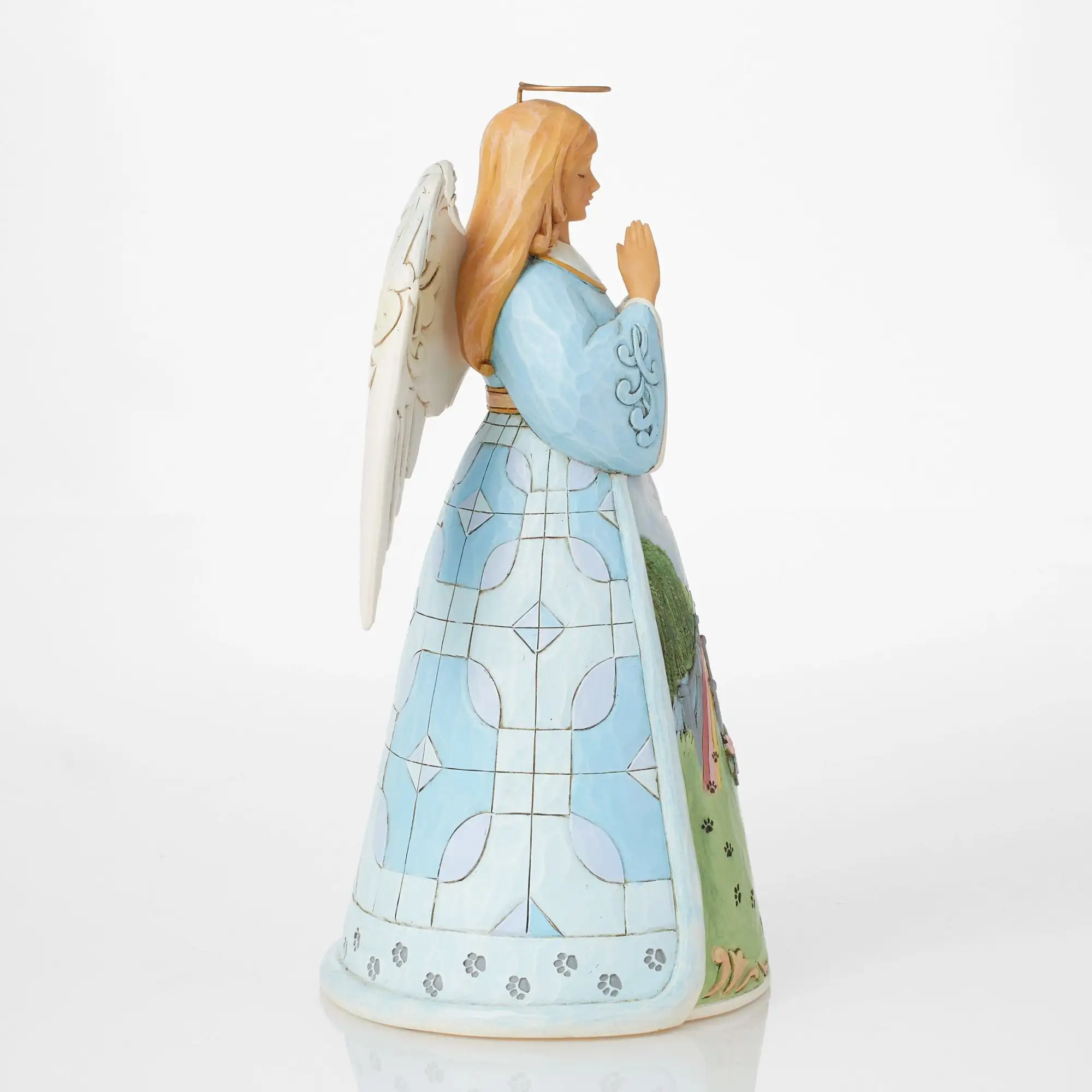 This Jim Shore angel honors the furry members of our family who have left this world. She prays over a green pasture scene as paw prints lead over a rainbow bridge signifying our pets final journey to peace. Hand-personalize with your pet's name.