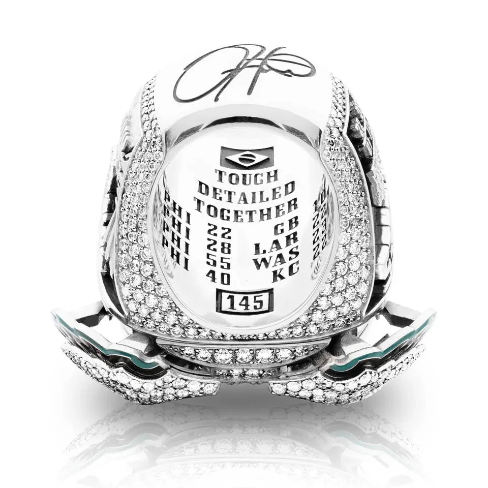 - 145 diamonds featured on the bezel of the ring, another celebration of the Eagles' playoff point total